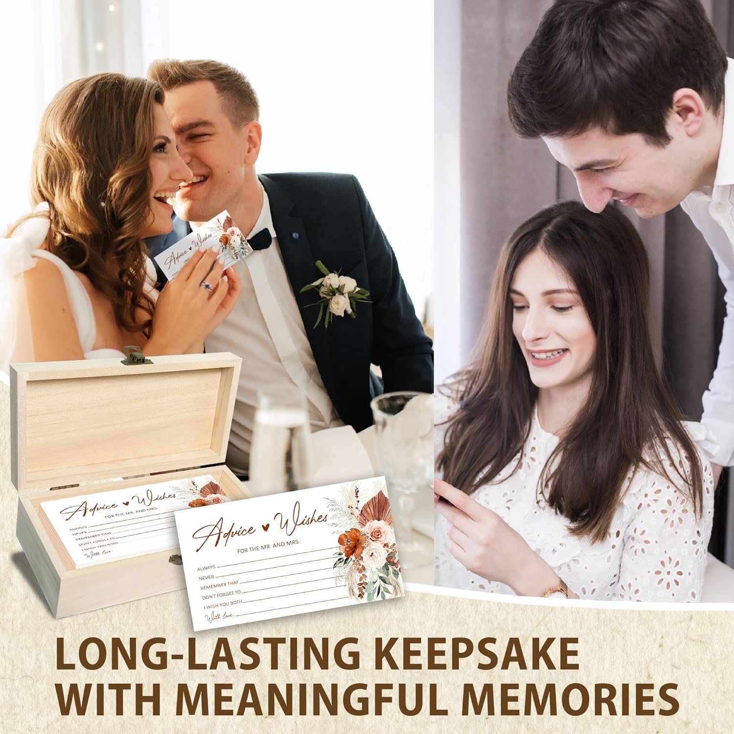 - Set Includes: Elevate your celebration with our deluxe set that includes 50 Pcs marriage wishes cards, an advice and wishes box for couples wedding shower decorations