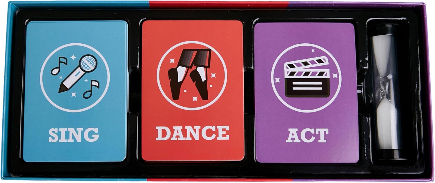 - 🎤💃 THREE WAYS TO PLAY – Pick a card and sing a song, perform a dance, or act out a scene based on the fun prompts—can you rise to the challenge?