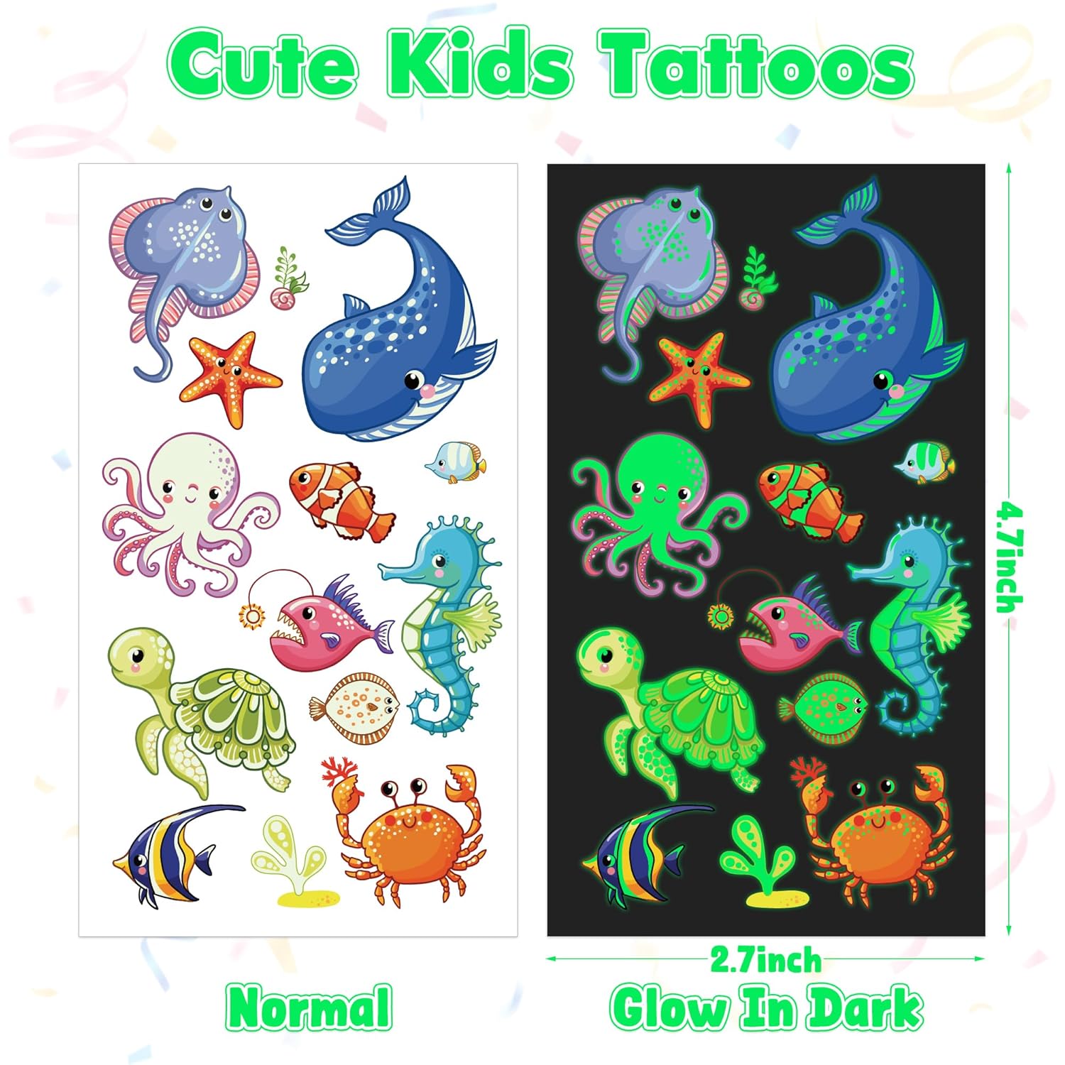 - Safe & Long-Lasting - Our toddler-safe temporary tattoos are waterproof and last 3-5 days! Perfect as face tattoos for kids or decorating gift boxes. The glow party accessories maintain brightness all night long.