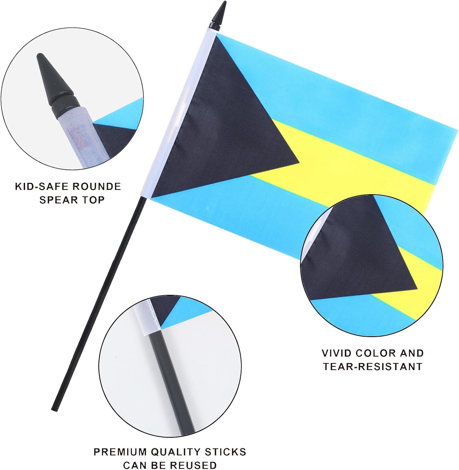 Bahamas Desk Flag 12" Solid Pole Deluxe Set Bahamian Flags Banner Mini Small Bahamas Office Table Flags with Black Stand Base Desktop Decorations(2Pack)