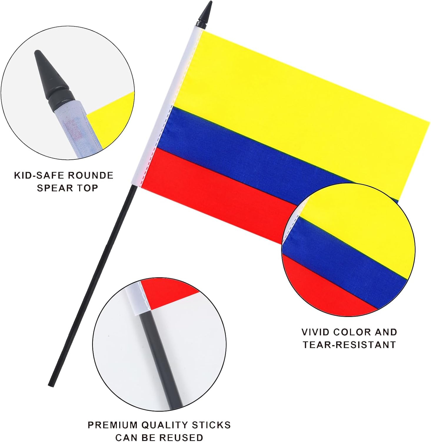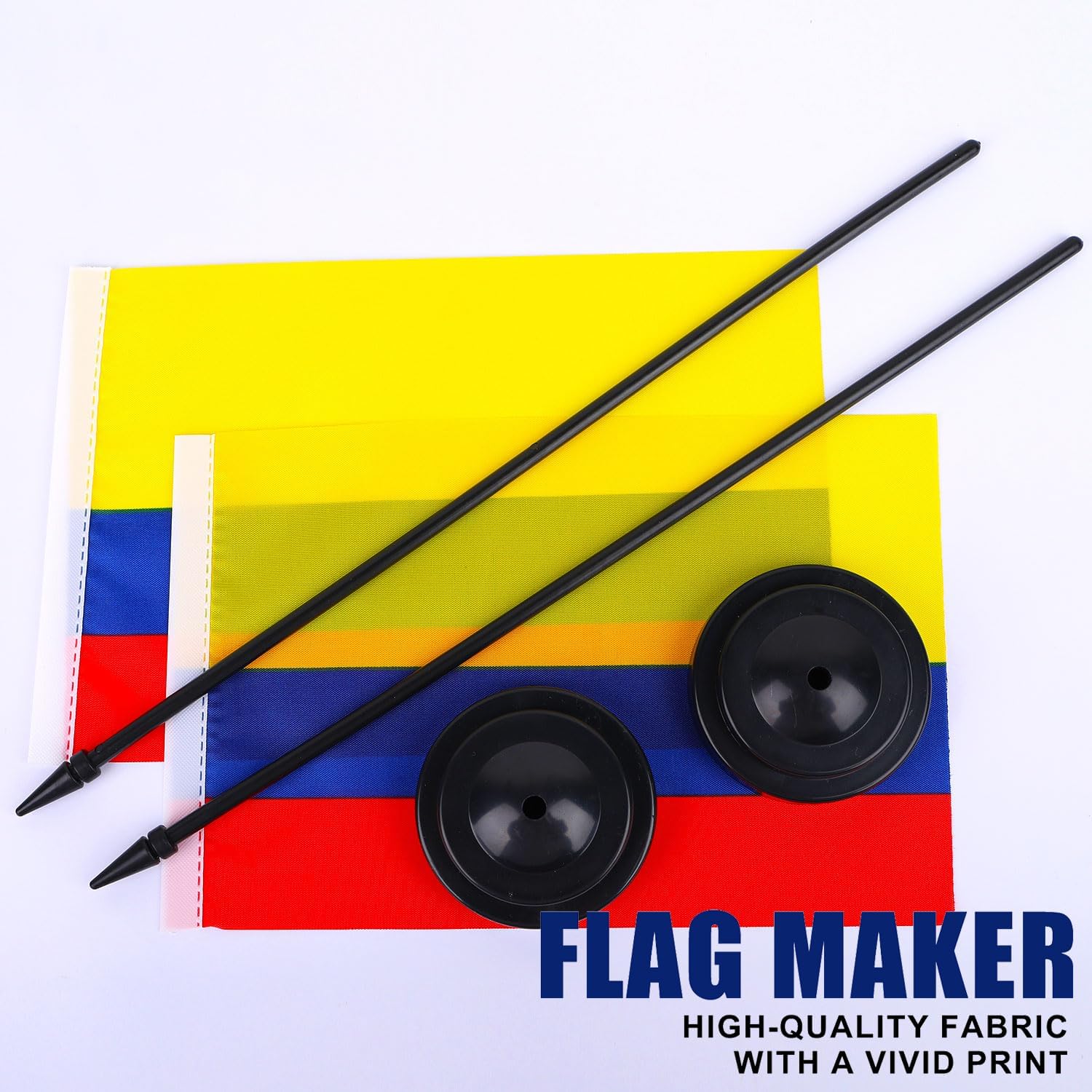 Colombian Desk Flag 12" Solid Pole Deluxe Set Colombiana Flags Banner Mini Small Colombian Office Table Flags with Black Stand Base Desktop Decorations(2Pack)