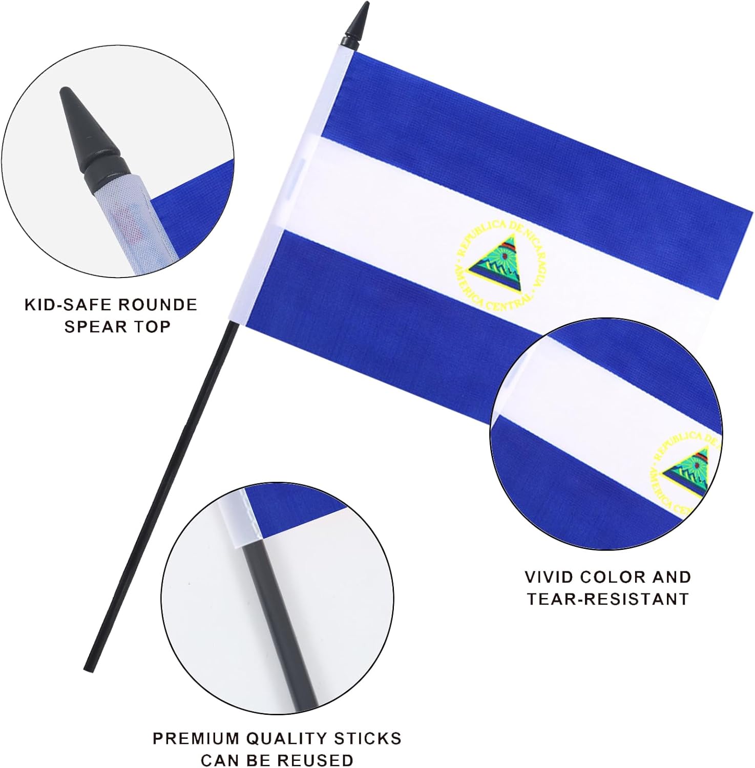 Nicaragua Desk Flag 12" Solid Pole Deluxe Set Nicaraguans Flags Banner Mini Small Nicaragua Office Table Flags with Black Stand Base Desktop Decorations(2Pack)