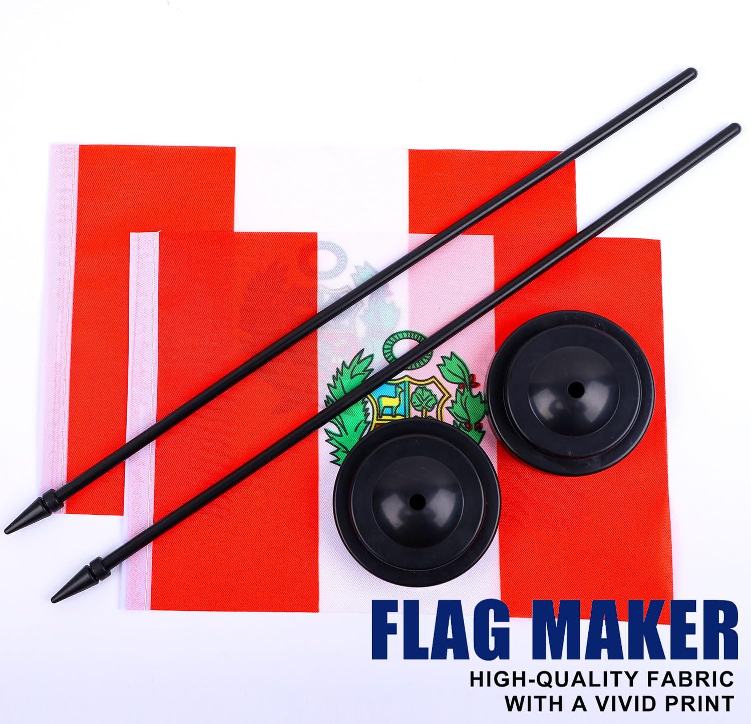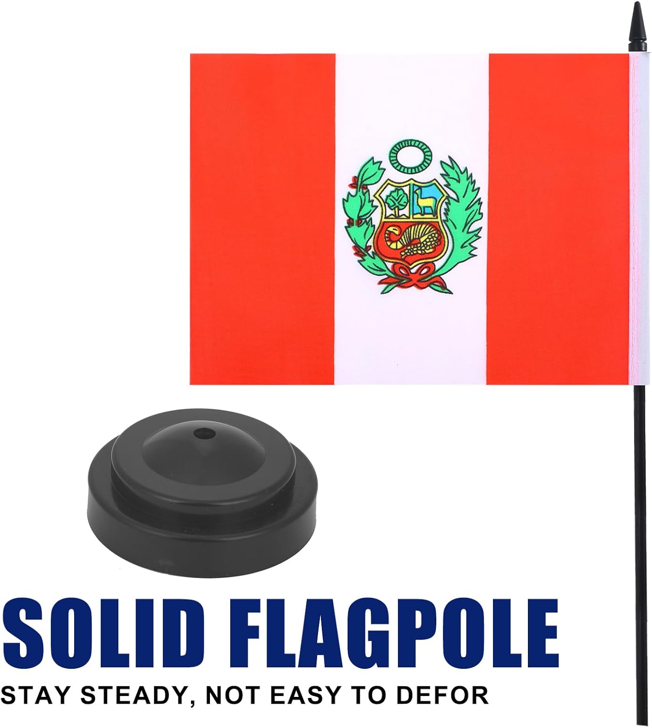 Peru Desk Flag 12" Solid Pole Deluxe Set Peruvian Flags Banner Mini Small Peru Office Table Flags with Black Stand Base Desktop Decorations(2Pack)