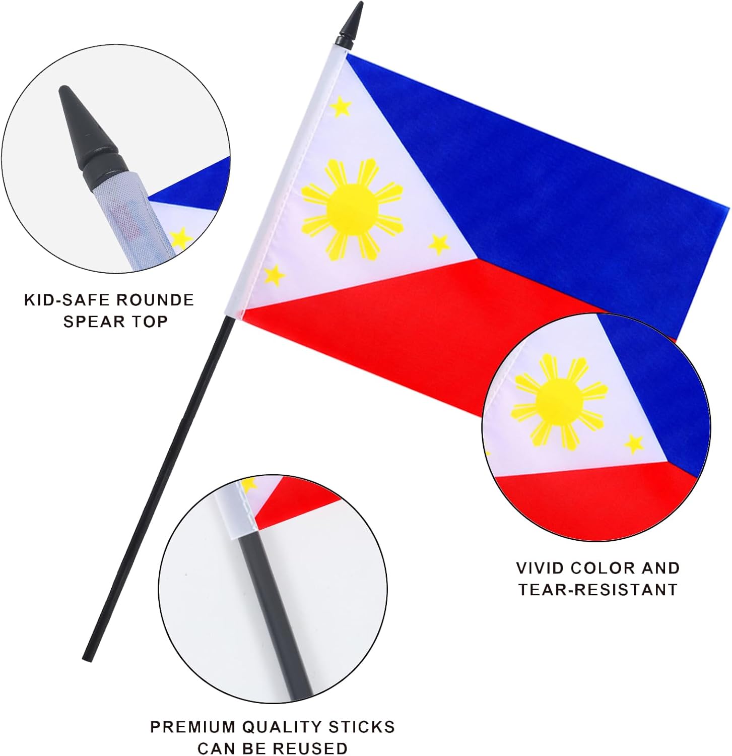 - Elegant Design: Each flagpole is crafted from sturdy black plastic, topped with a beautifully designed spearhead for a touch of elegance; This combination of style and function makes your desktop decor flag not only stunning but also eye-catching