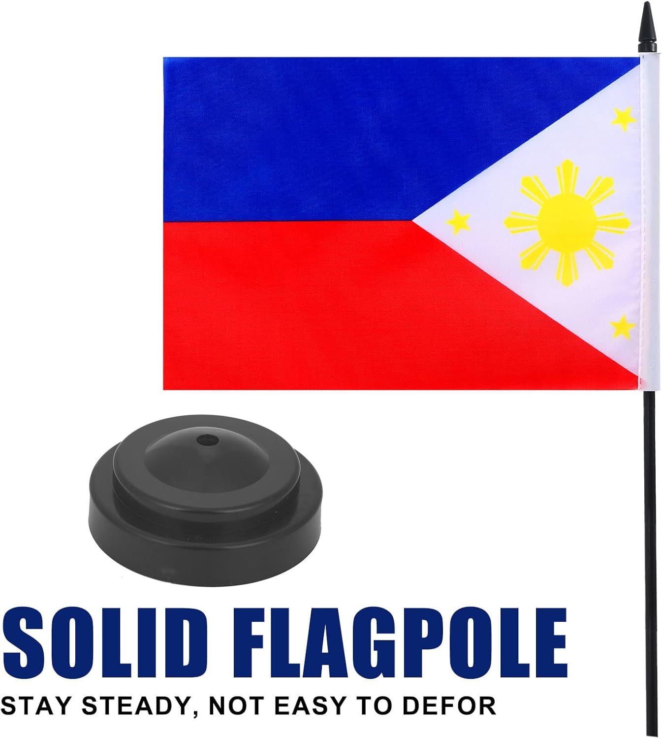Philippines Desk Flag 12" Solid Pole Deluxe Set Filipino Flags Banner Mini Small Philippines Office Table Flags with Black Stand Base Desktop Decorations(2Pack)