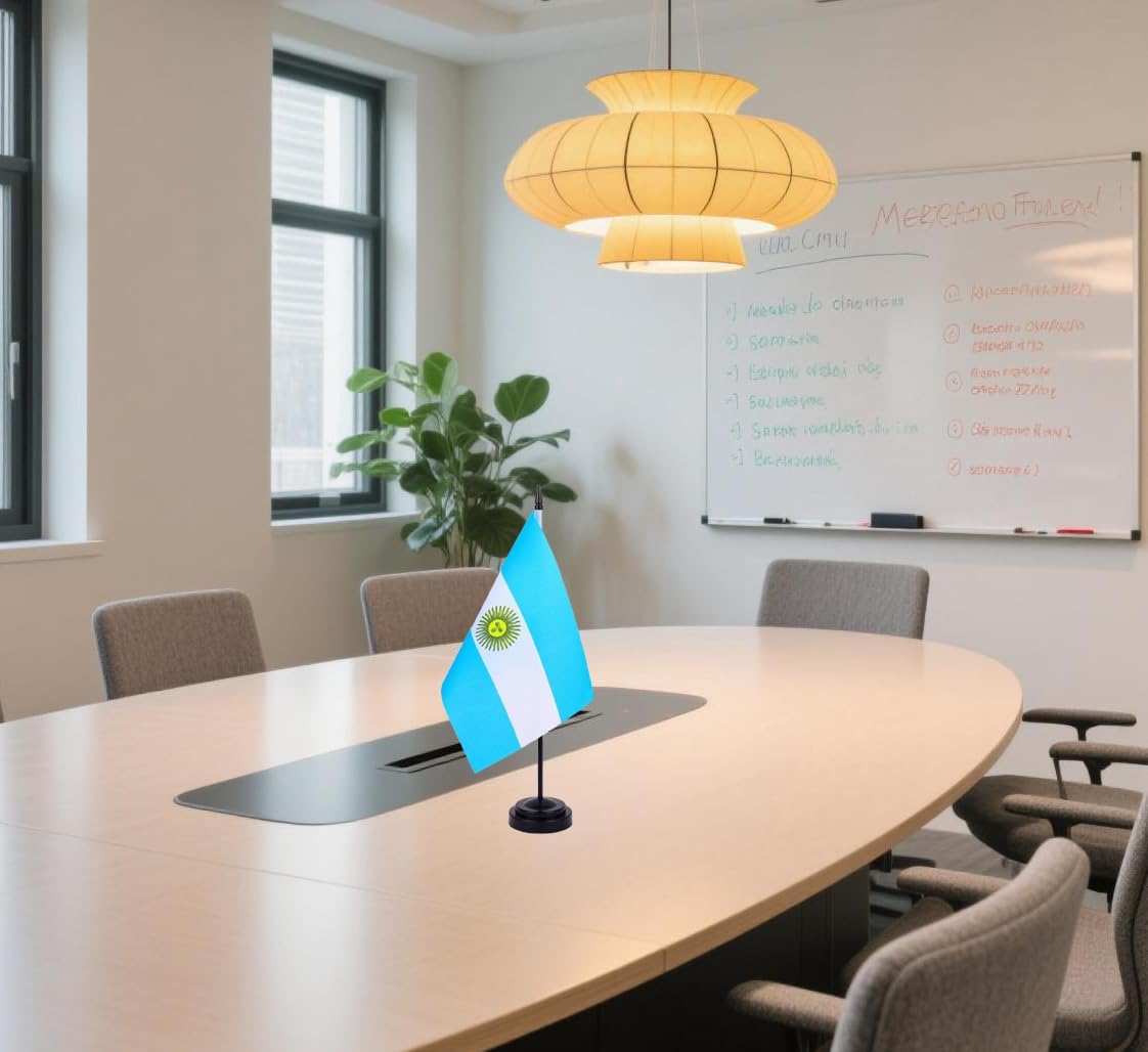 Argentina Desk Flag 12" Solid Pole Deluxe Set Argentinian Flags Banner Mini Small Argentina Office Table Flags with Black Stand Base Desktop Decorations(2Pack)