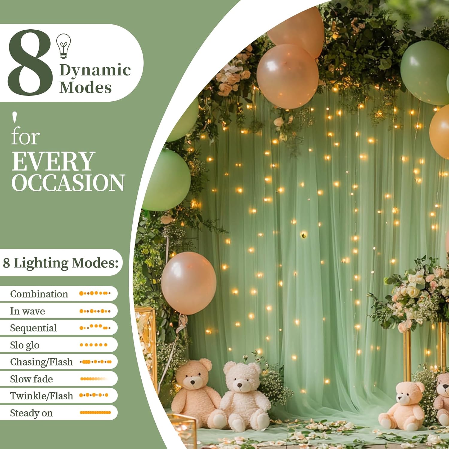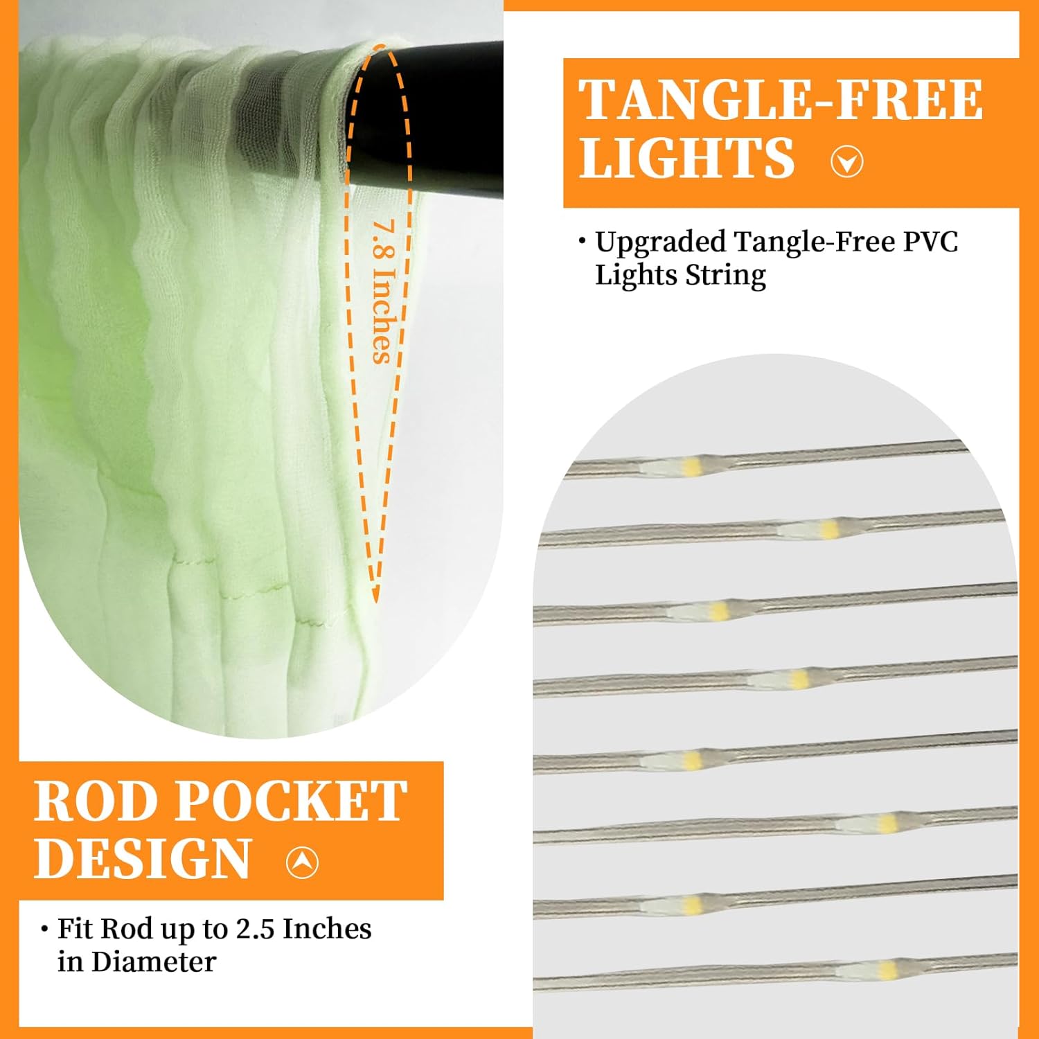 - Easy Setup & Reusable Decor: Designed for convenience, the tulle curtain features a 2.5-inch rod pocket for easy hanging on pipes or stands. Includes 12 Transparent clips make the lights simple to hang and secure to the backdrop, adding a warm, inviting glow. Reusable and easy to store, this set is perfect for multiple events