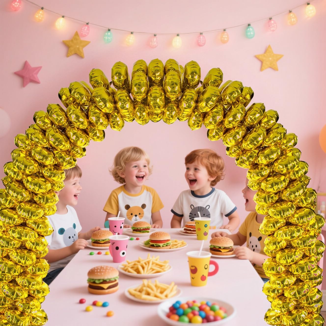 - 5.Customizable & Reusable – Prefer a different balloon style? Simply swap out the included foil balloons for your favorite colors and designs. The durable structure allows for multiple uses, making it a cost-effective party decoration.
