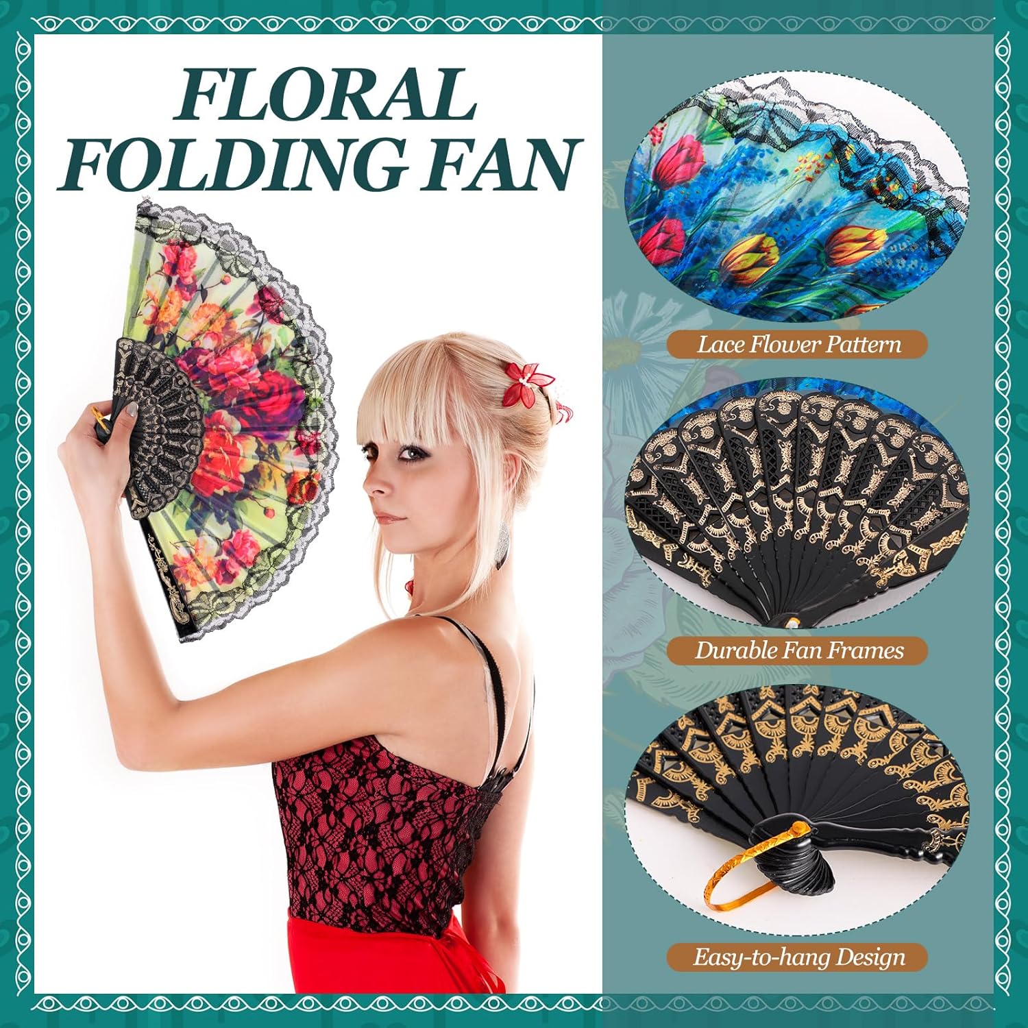 - Beautifully Crafted for Every Occasion: our vintage Spanish foldable fans boast a beautifully crafted design, are suitable for all kinds of occasions, such as weddings, churches, flower tea parties or various cultural events; These folding fans for women add a touch of classic elegance to your ensemble, ensuring you're always in style, whatever the event