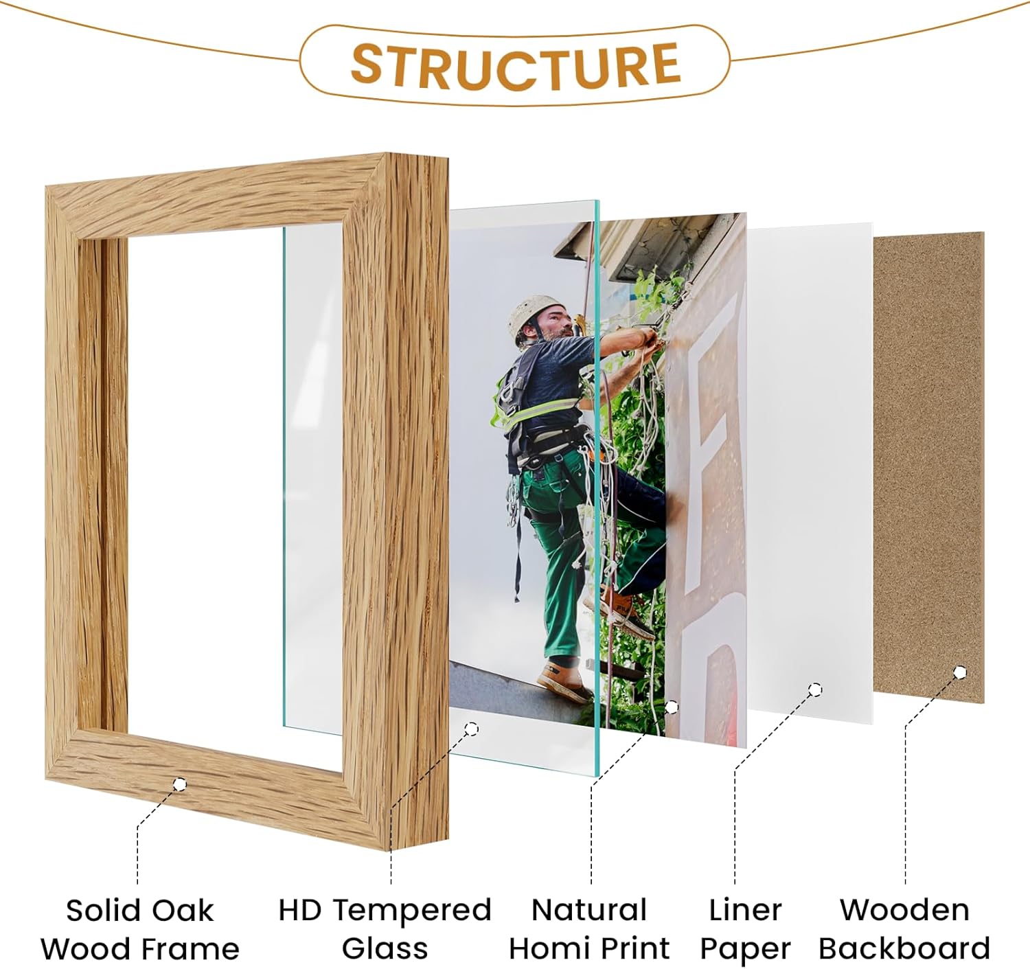 - 【Natural Solid Oak Wood Frame】This 7x9 inch picture frame is made of high-quality 100% solid oak wood, the natural wood grains on this 9x7 real oak wood picture frame lends it an authentic look.