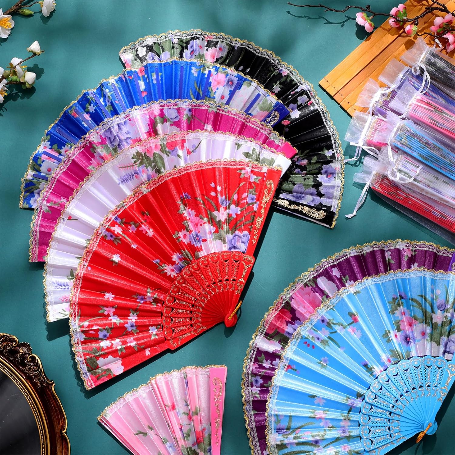 - Quality Materials: our foldable fans are exquisitely crafted from silk, fabric, and plastic, offering a touch of sophistication and durability; These folding hand fans are a testament to quality, ensuring a long-lasting addition to your accessories collection; These vintage foldable fans are suitable for those who appreciate elegance and enduring style