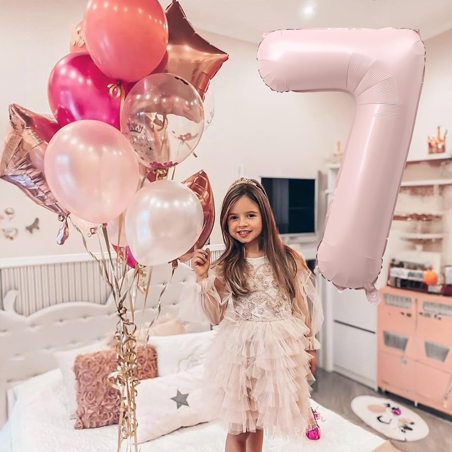 - Baby Pink Number 7 Balloon 40 Inch: Includes 1pc 7 balloon and a straw for easy inflation and deflation. This helium balloon is perfect for birthdays, anniversaries, or special occasions like a 7th, 17th, 27th, or 70th celebration