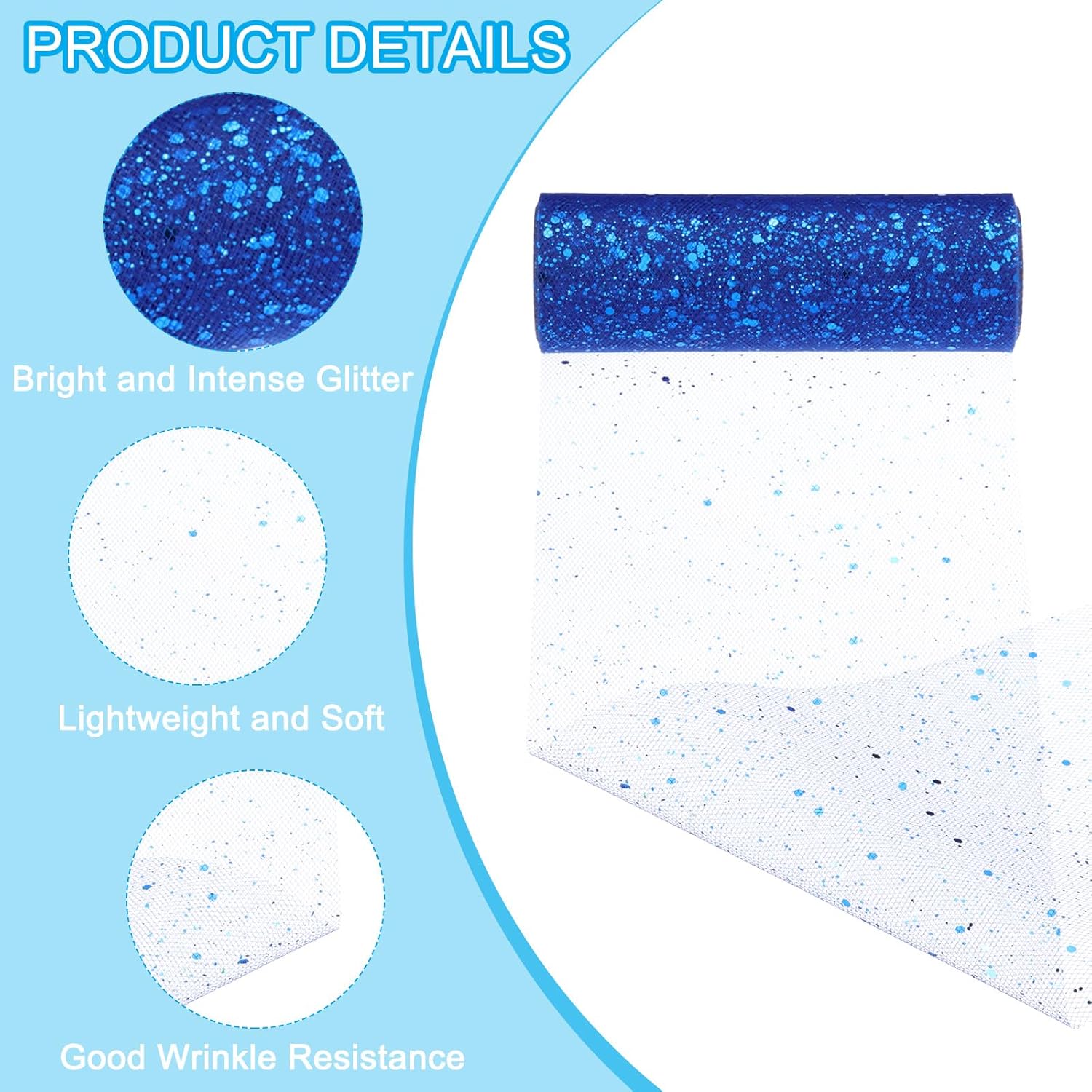 PATIKIL Tulle Fabric Rolls, 6 Inch by 10 Yards Fabric Spool Tulle Sparkling Ribbon Netting Sequin for DIY Tutu Skirts Crafts Wedding Party Decorations, Blue