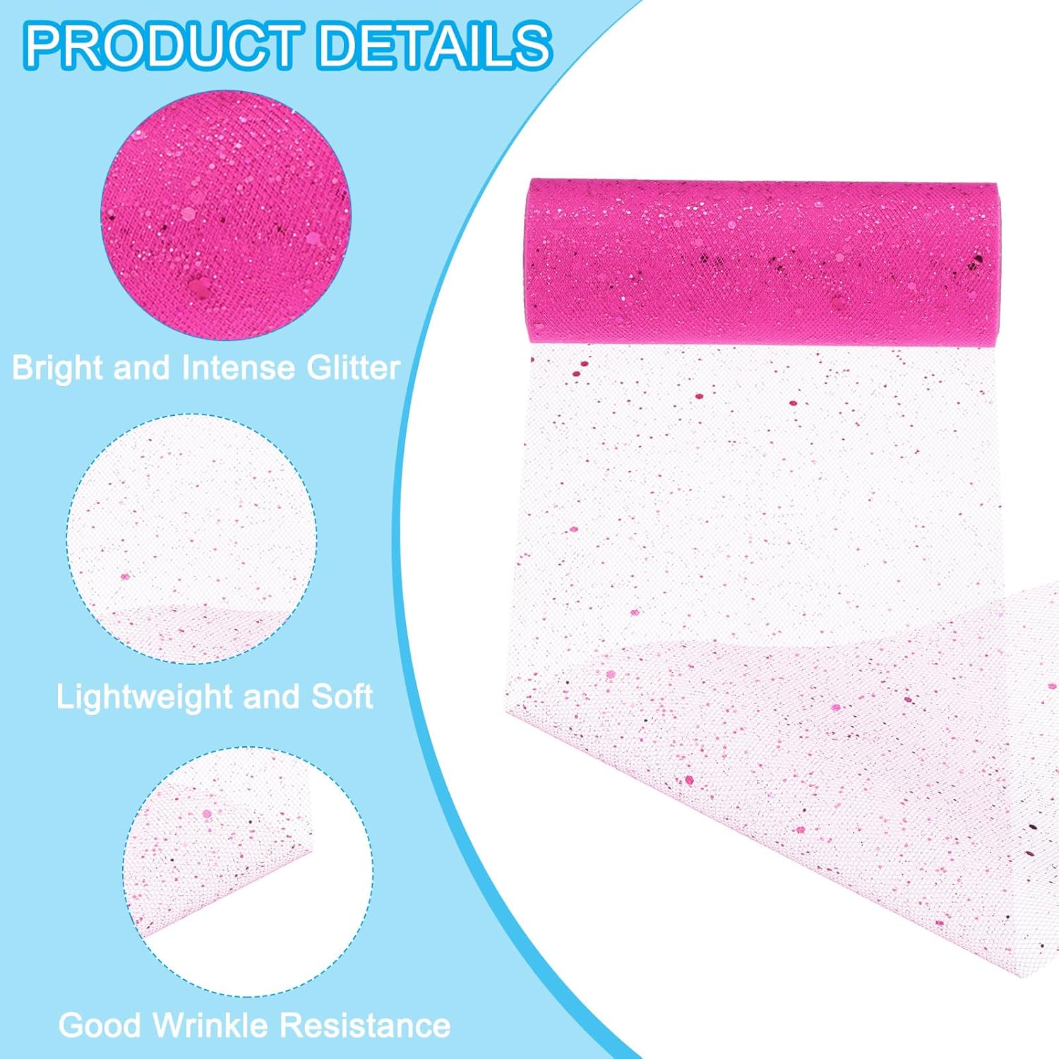 PATIKIL Tulle Fabric Rolls, 6 Inch by 10 Yards Fabric Spool Tulle Sparkling Ribbon Netting Sequin for DIY Tutu Skirts Crafts Wedding Party Decorations, Rose Red