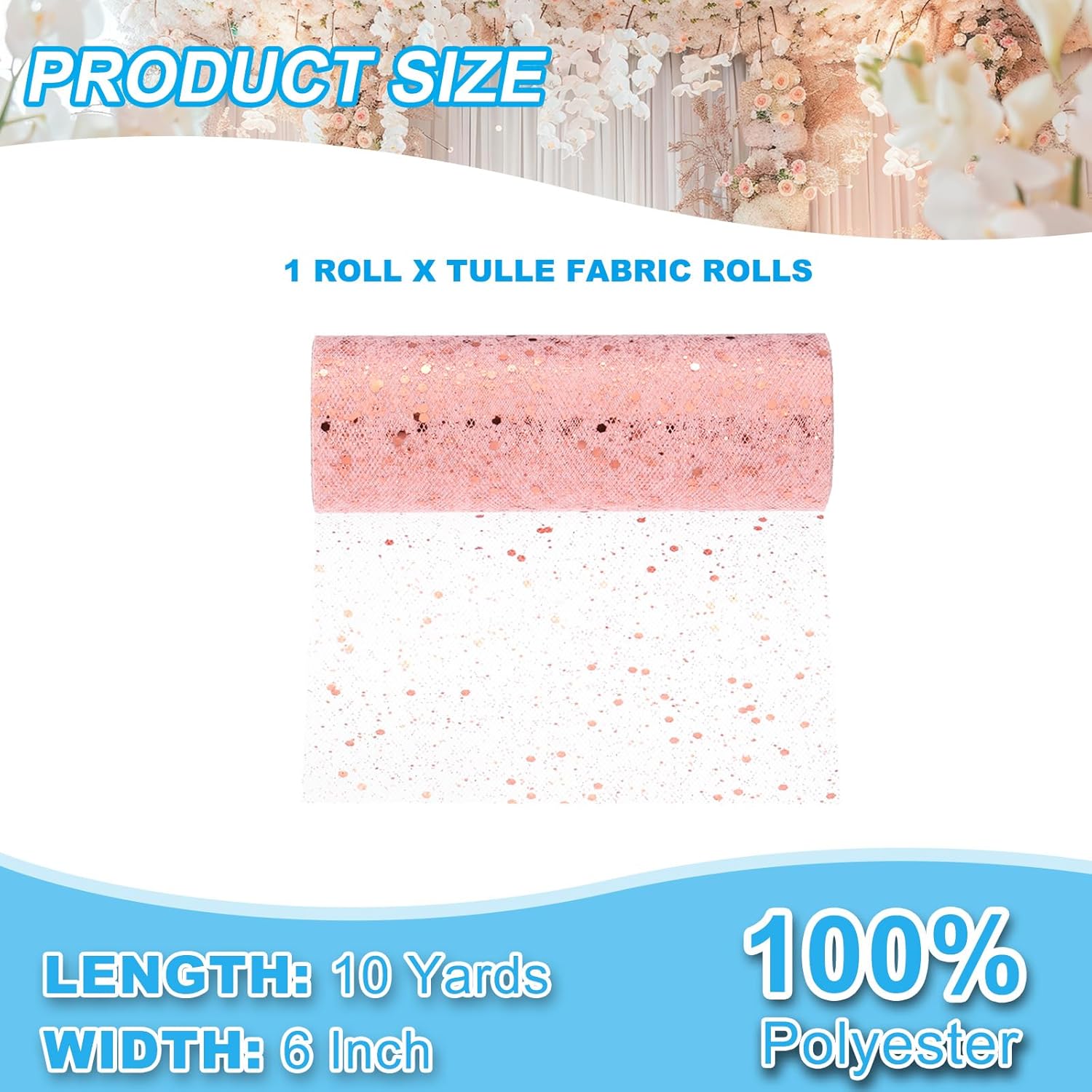 - Material: 100 Polyester; Color: Rose Gold; Total Size: 9 Meter x 15 cm / 10 Yards x 6 Inch (L*W); Package List: 1 Roll x Tulle Fabric Rolls