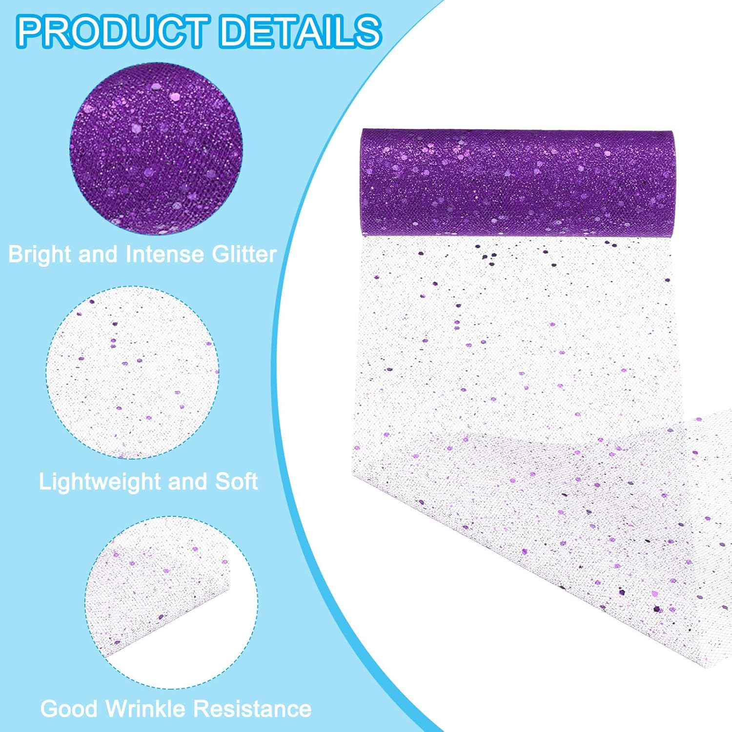 PATIKIL Tulle Fabric Rolls, 6 Inch by 10 Yards Fabric Spool Tulle Sparkling Ribbon Netting Sequin for DIY Tutu Skirts Crafts Wedding Party Decorations, Dark Purple