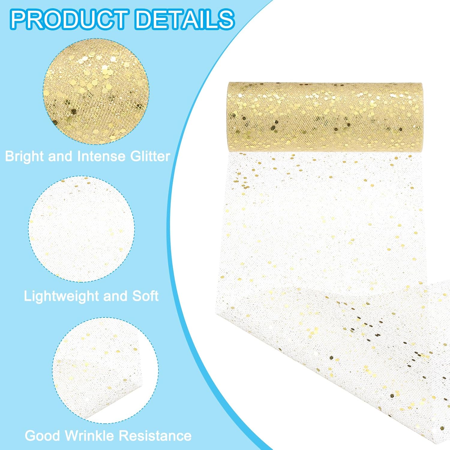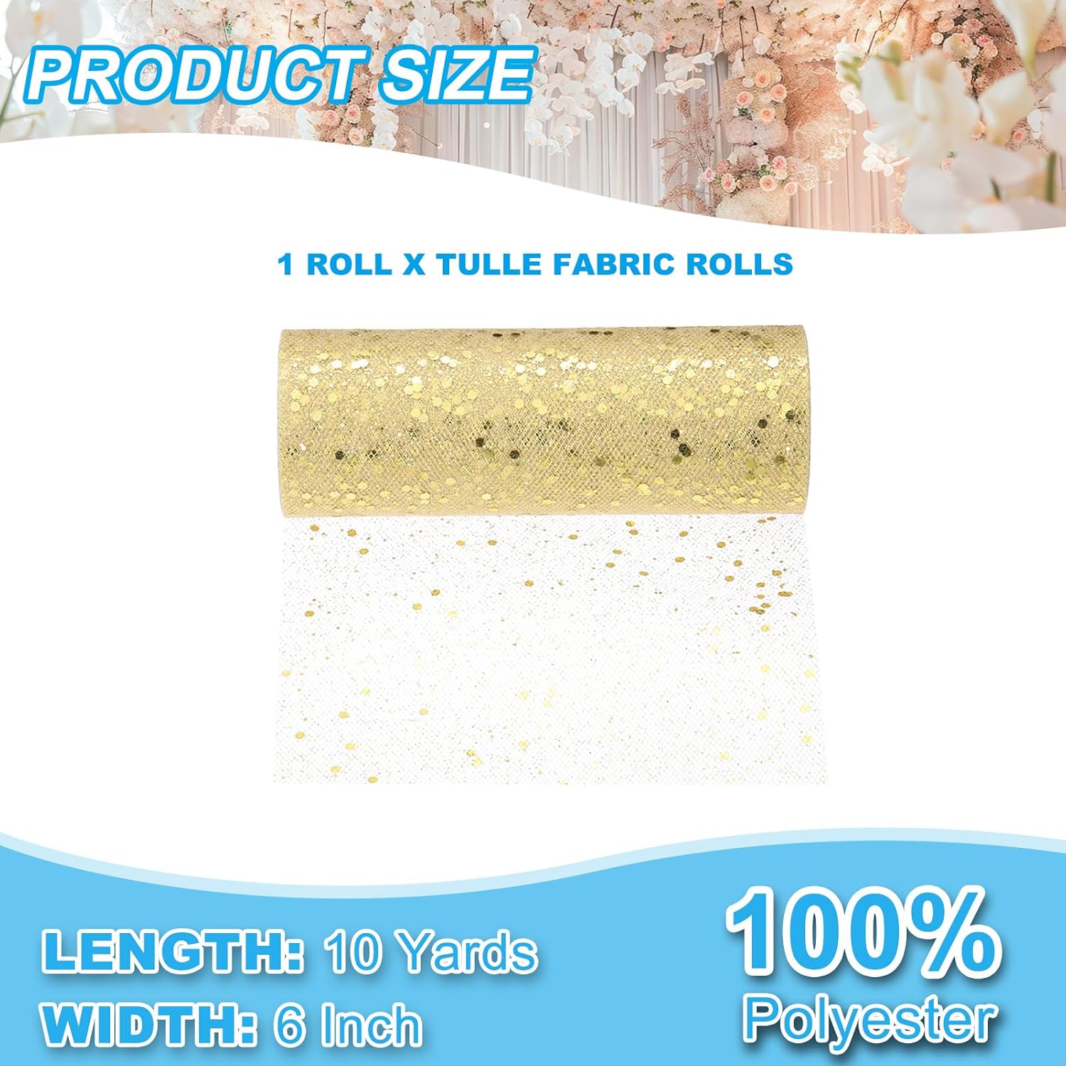 - Material: 100 Polyester; Color: Champagne Gold; Total Size: 9 Meter x 15 cm / 10 Yards x 6 Inch (L*W); Package List: 1 Roll x Tulle Fabric Rolls