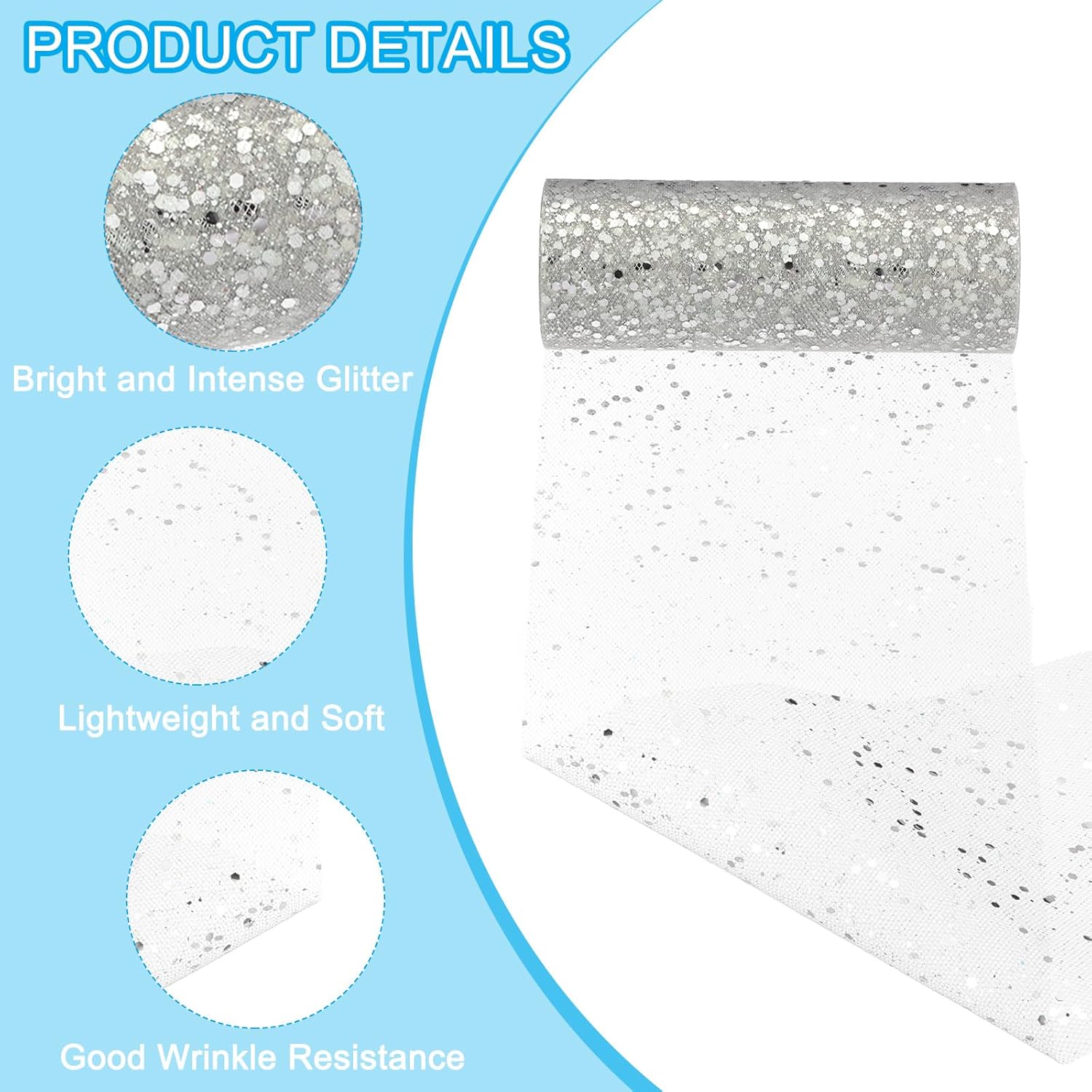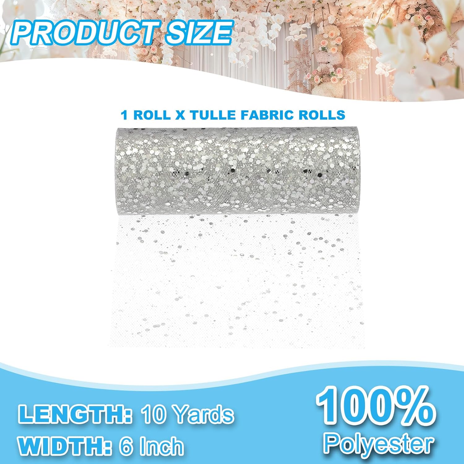 - Material: 100 Polyester; Color: Silver; Total Size: 9 Meter x 15 cm / 10 Yards x 6 Inch (L*W); Package List: 1 Roll x Tulle Fabric Rolls