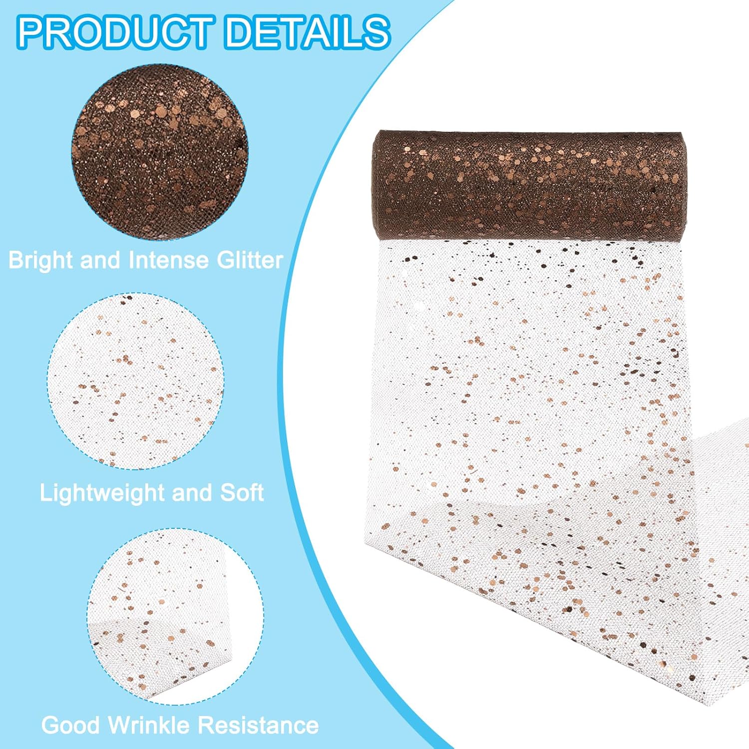 - Material: 100 Polyester; Color: Coffee; Total Size: 9 Meter x 15 cm / 10 Yards x 6 Inch (L*W); Package List: 1 Roll x Tulle Fabric Rolls