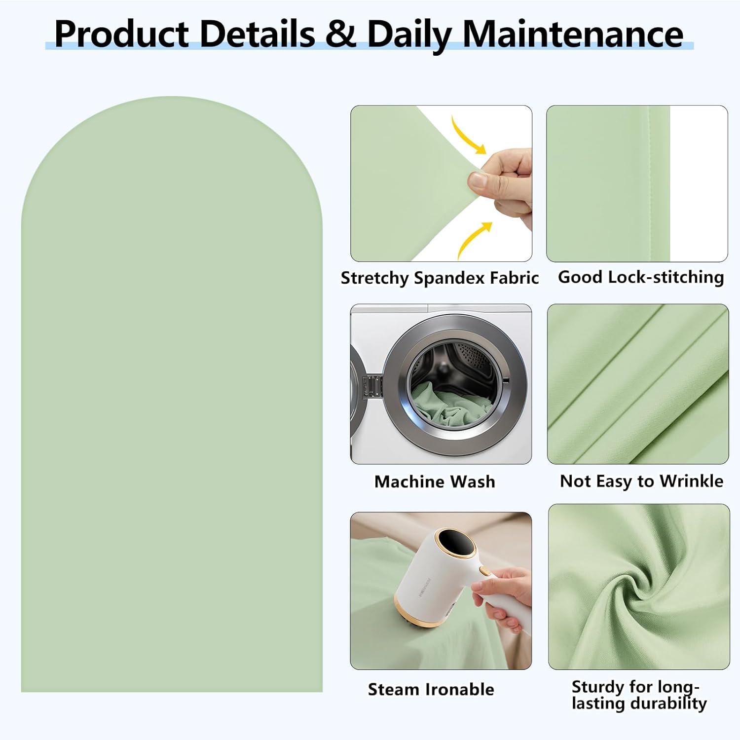 HEMMOTOP Green Arch Cover, 7.2 ft Spandex Wedding Balloon Arch Covers Stretchy Backdrop, Round Top Photo Stand Cover for Birthday, Baby Shower, Party, Reusable Double-Sided (Matcha Green, 7.2 ft)