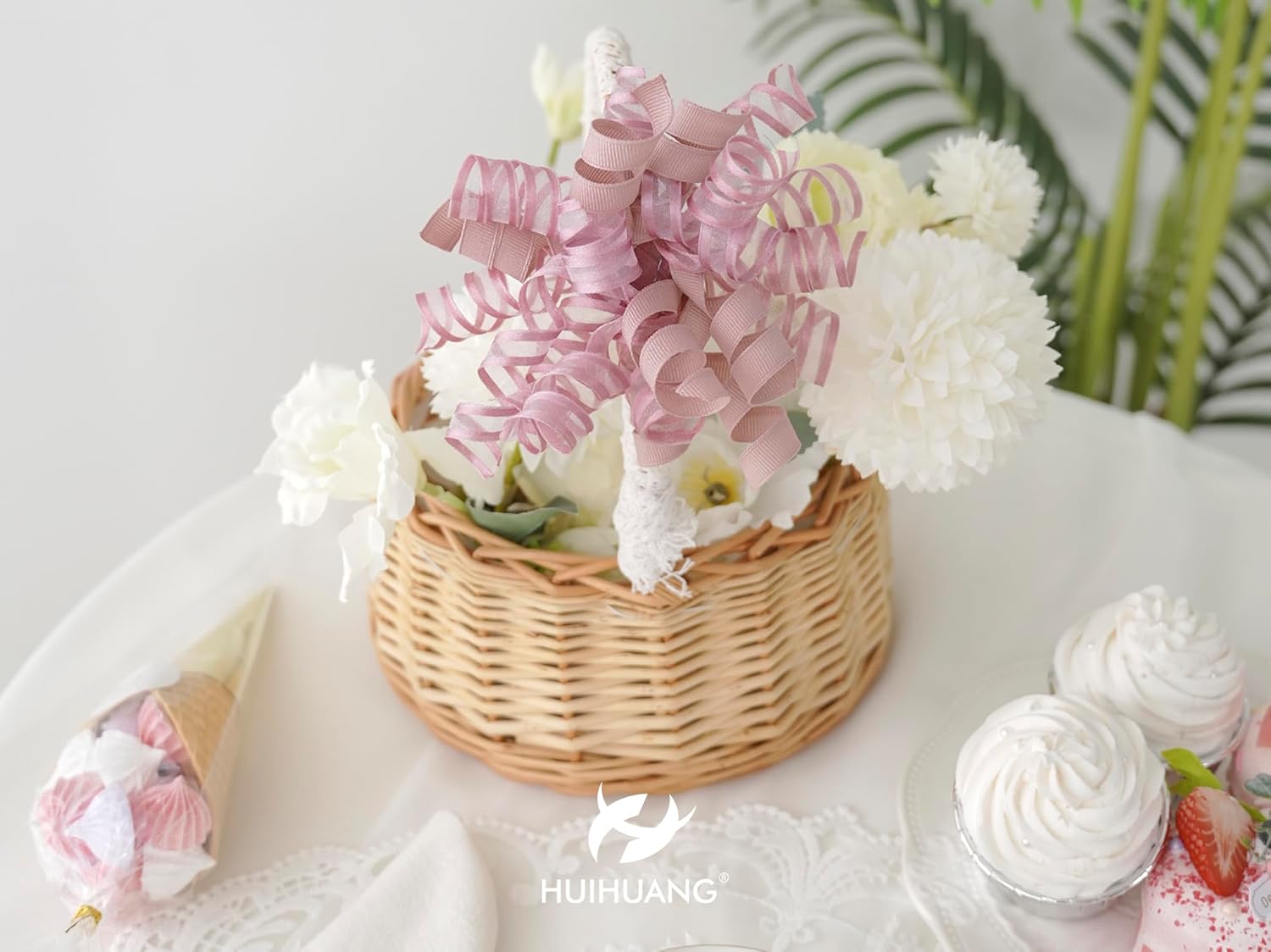 - SIZE & PACK: Each package contains 8 pcs dusty rose curly bows, and made from 12 strands of 3/8" wide grosgrain and sheer satin ribbon that adds a airy, elegance and luxurious feel to any gift or decoration. Bows measures 5"~5.5" wide