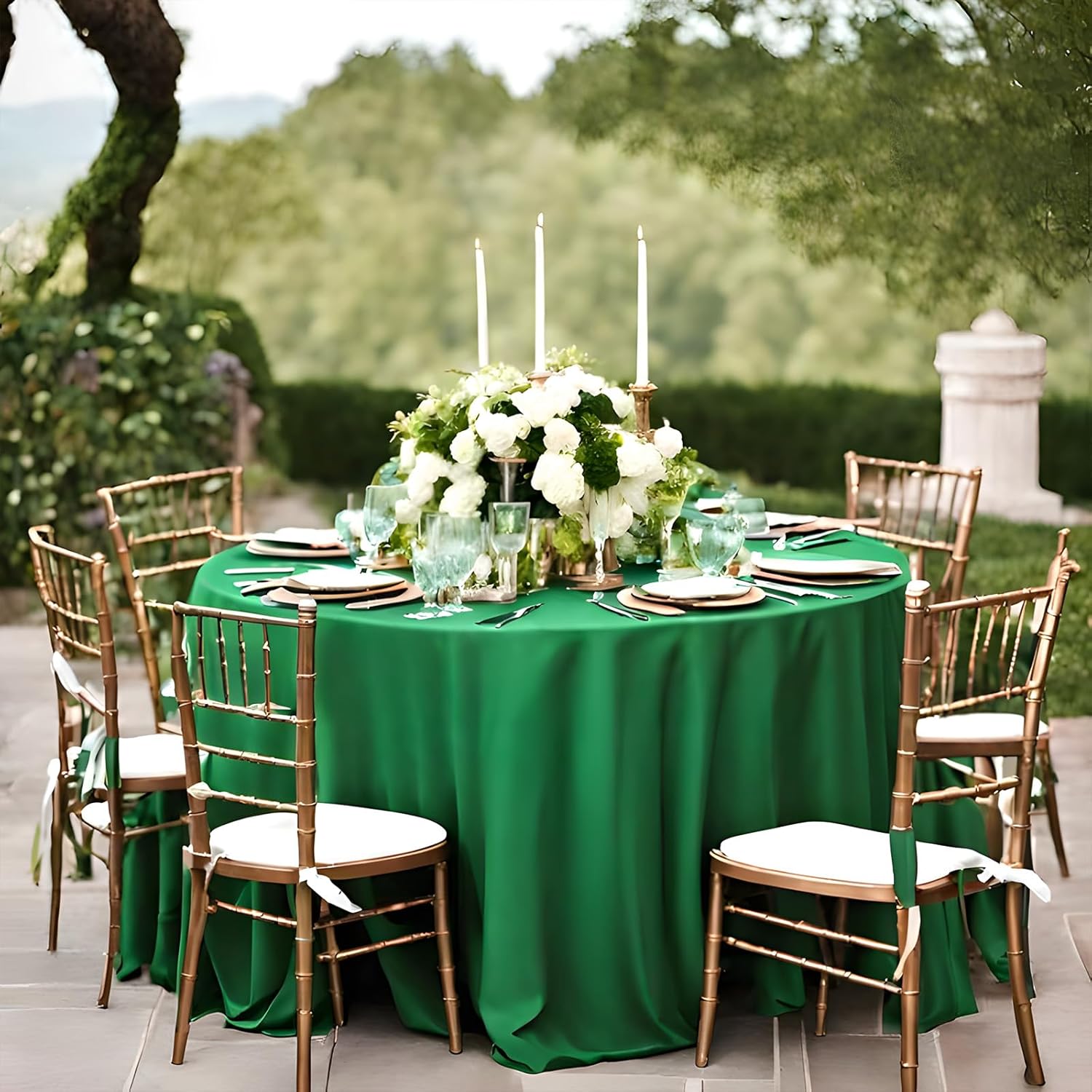 - Measurements and Colors: This green cloth tablecloths is 120 inches in diameter, perfect for standard 8FT(96") round tables, providing a 12" drop, or 24" if your round table is 6FT (72"). This table cloth round cover is available in totally 5 colors. Youβll be able to choose a luxurious and ideal table cover for your table. Please measure the size of your table before purchasing.