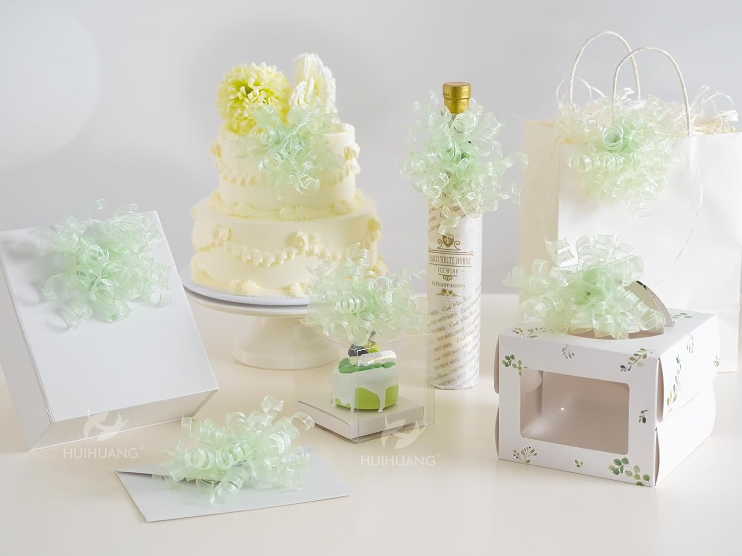 - SIZE & PACK: Each package contains 8 pcs sage green curly bows, and made from 12 strands of 3/8"(9mm) wide sheer ribbon that adds a light, airy, and luxurious feel to any gift or decoration. Bows measures 5"~5.5" wide
