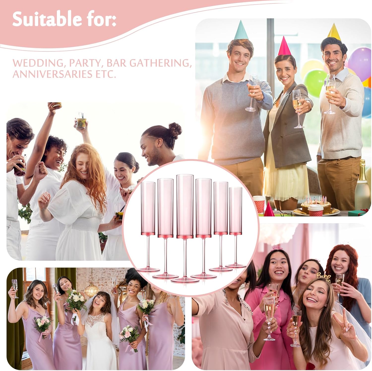 - Adequate number of pink champagne cups: With 50 PCS flutes in each set, 9.8*2.7*1.7 Inches and 5.4 OZ capacity, you will have enough wine glasses for all guests. When you are hosting a grand wedding, a large party or a corporate event, this clear acrylic champagne glasses ensures that everyone can enjoy champagne to their heart's content.