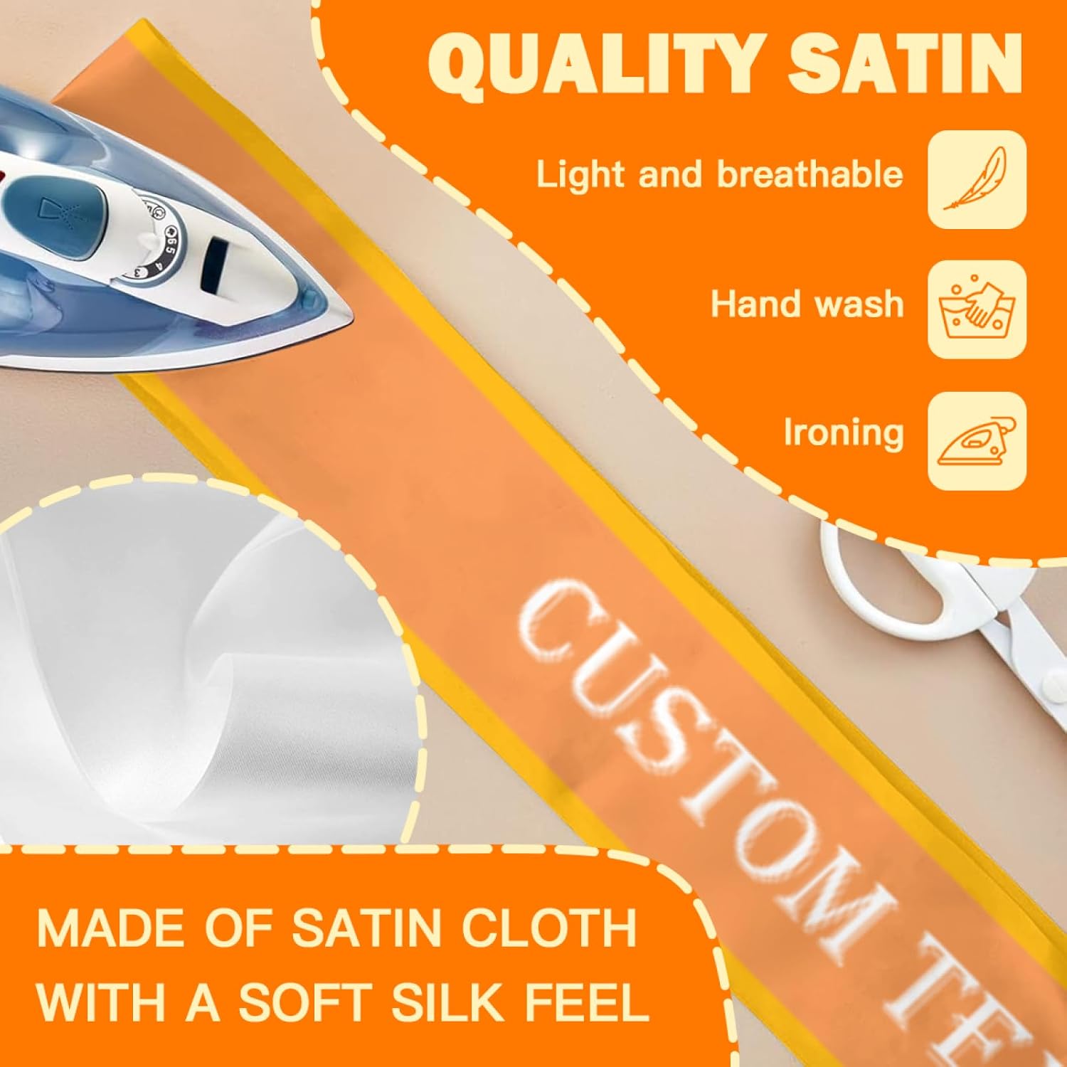 Custom Sash,Personalized Birthday Sash with Text Photo,Customized Bachelorette Sash Quote Sash Bride to Be Sash Color Optional (With decorative edge, Orange)