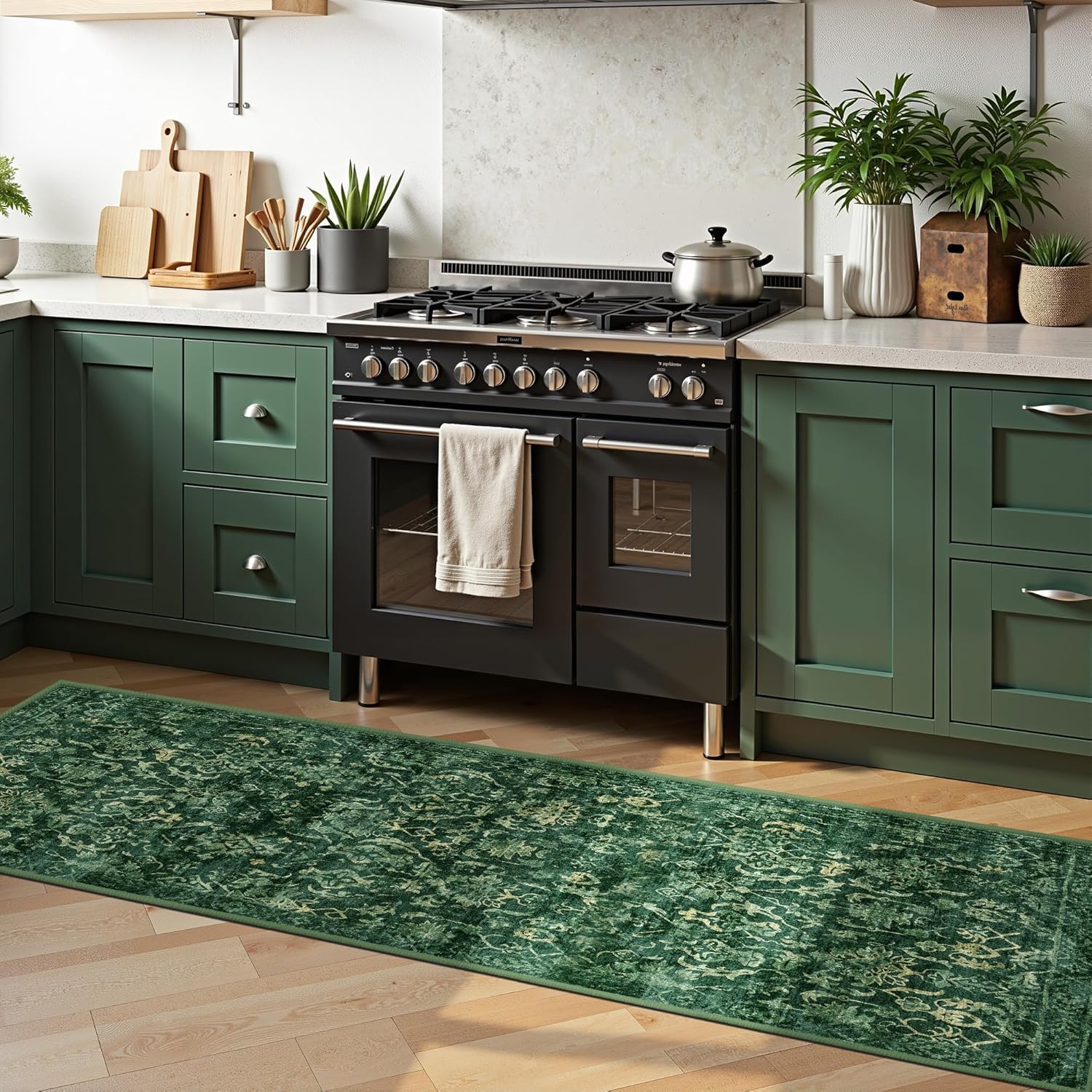 - Deerly Vintage 3x7 Runner Rug: These Hallway runner rug feature trendy faded style and unique neutral distressed floral pattern, vintage tones combines the dark green and ivory color, creating a comfortable and warm family environment. 3x7 rug runner is suitable for indoor entrance, bedroom, kitchen, bathroom, etc.