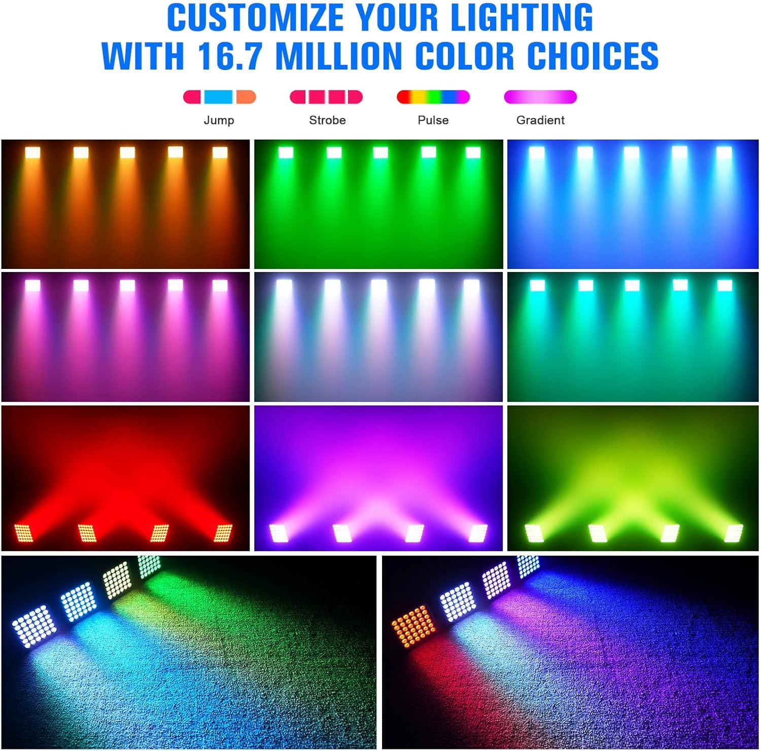 - 【Multiple Control Methods】ThisUplights lamp supports multiple operation modes: remote control, voice control, DMX512 (3/5/7CH), automatic mode, master-slave mode. It is very easy to control and can meet any of your lighting needs.