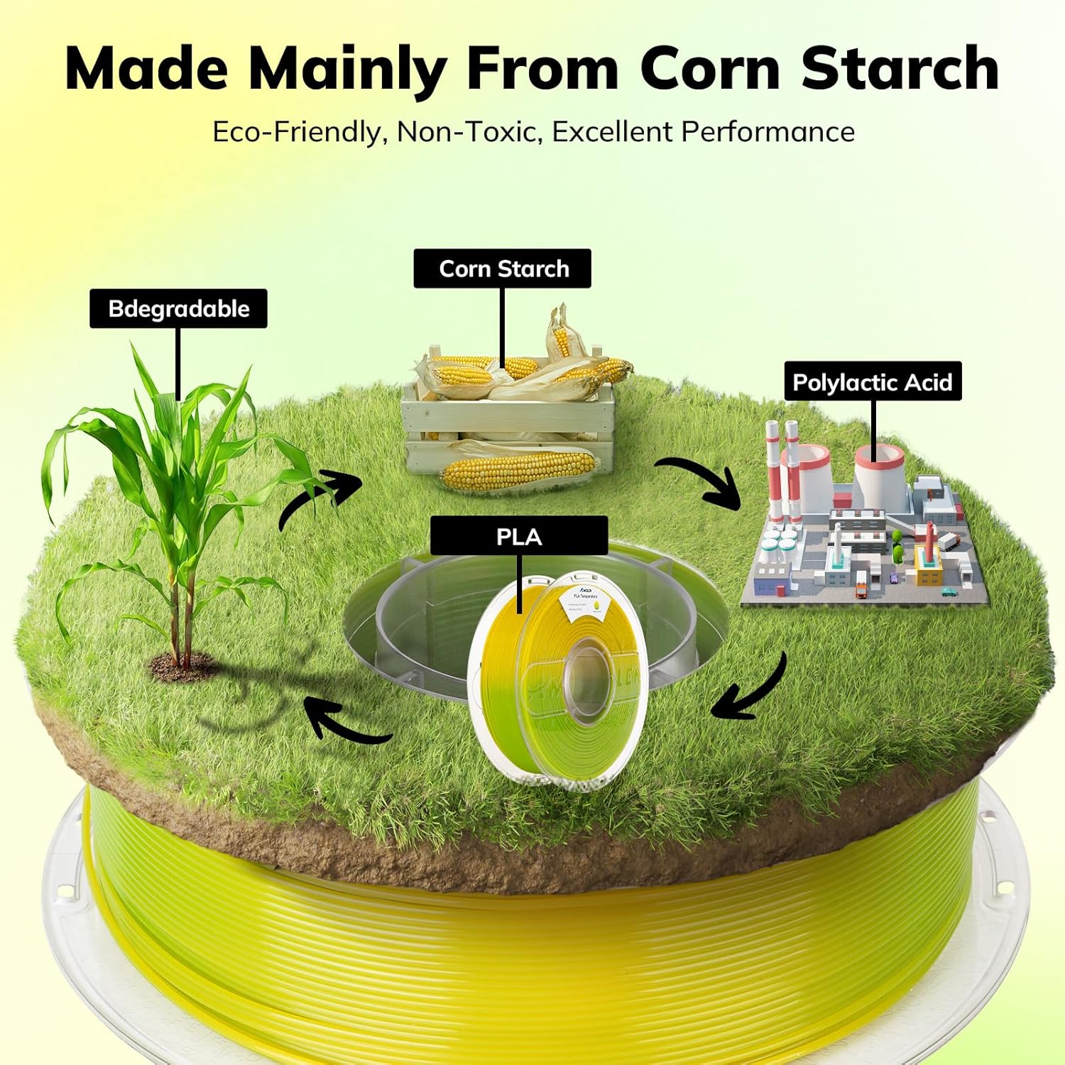 - 【TEMPERATURE COLOR CHANGE】Under 0℃ it looks green and above 30℃ it starts getting yellow. At room temperature, it is light green. Please note that this type of filaments should avoid long-time direct sunlight exposure. The longer the exposure time, the faster the color fades