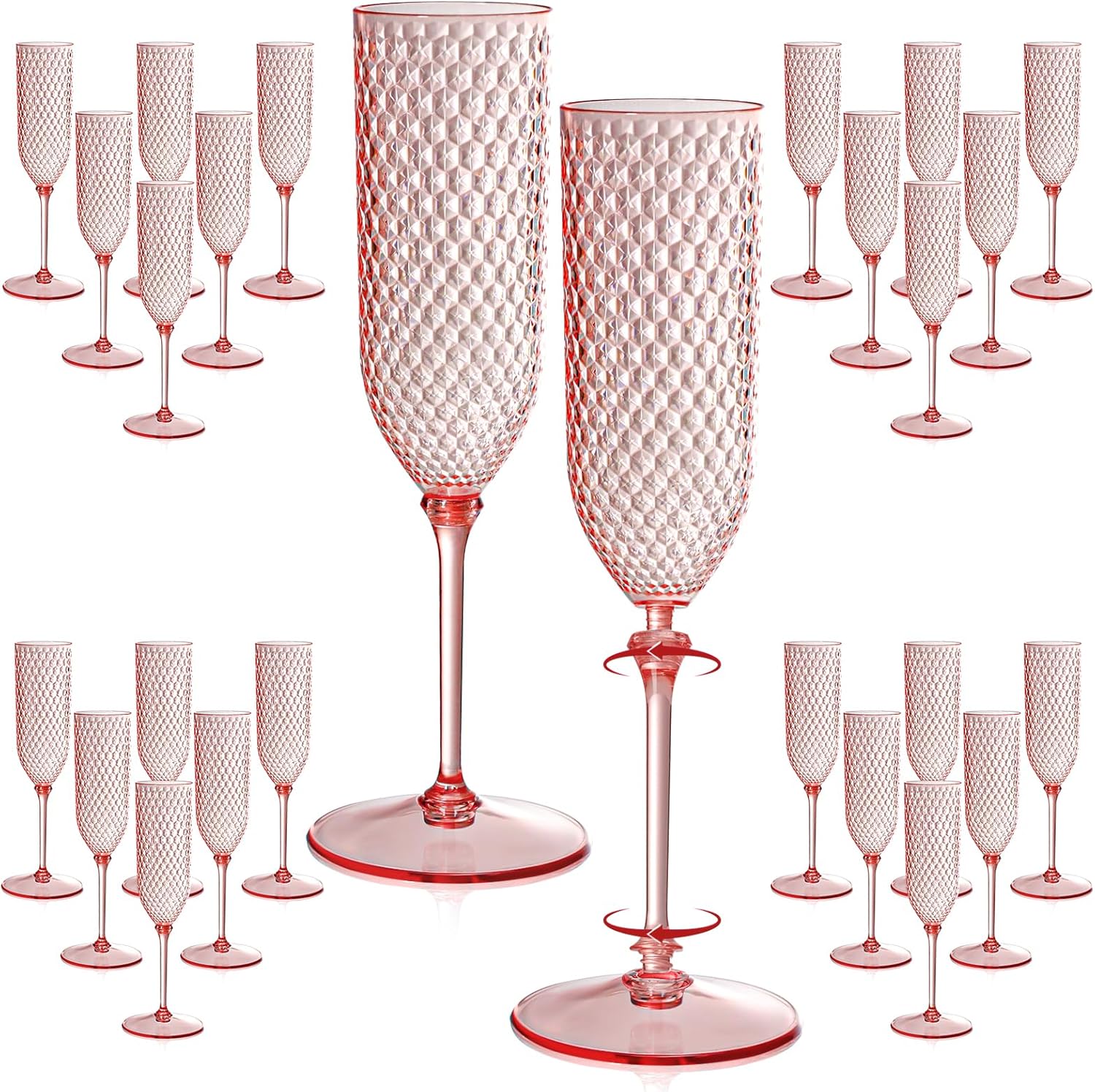 - Elegant Design: Our Champagne glasses appearance adopts a breakthrough design, applying diamond pattern to goblet glasses. This plastic champagne flute is different from other assembled glasses. Our champagne flute features a seamless and elegant design in its appearance, enhancing the charm of whatever activity you're engaged in. Add these to your wine cabinet and various parties and make a toast to your happiness!