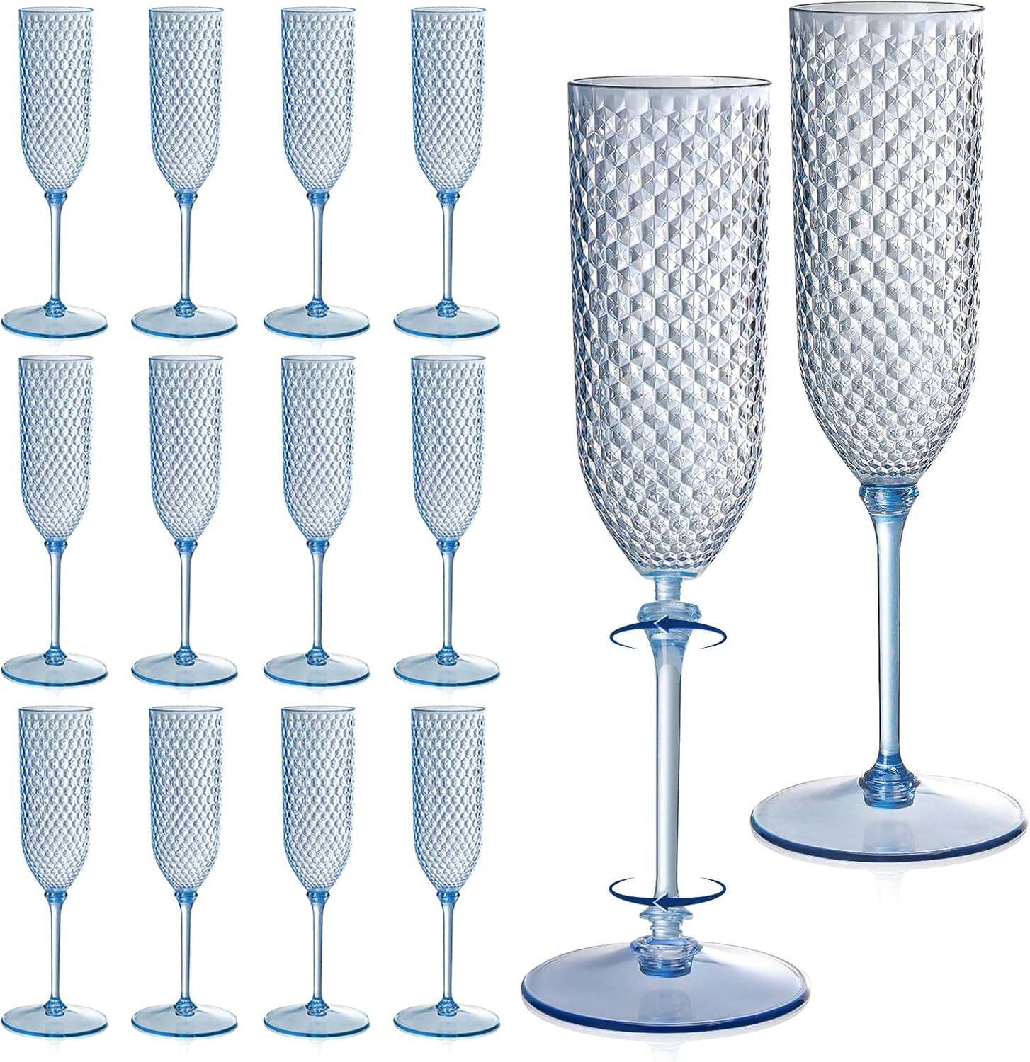 - Elegant Design: Our Champagne glasses appearance adopts a breakthrough design, applying diamond pattern to goblet glasses. This plastic champagne flute is different from other assembled glasses. Our champagne flute features a seamless and elegant design in its appearance, enhancing the charm of whatever activity you're engaged in. Add these to your wine cabinet and various parties and make a toast to your happiness!