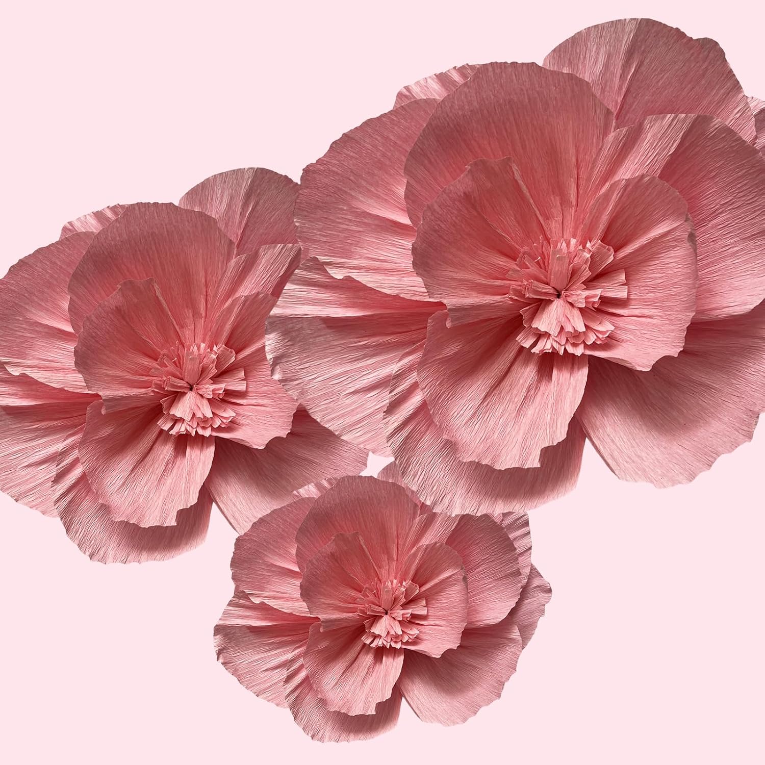 - Crepe Paper Flowers: Total 9pcs pink paper flowers in 3 sizes 12”, 10”, 8”.