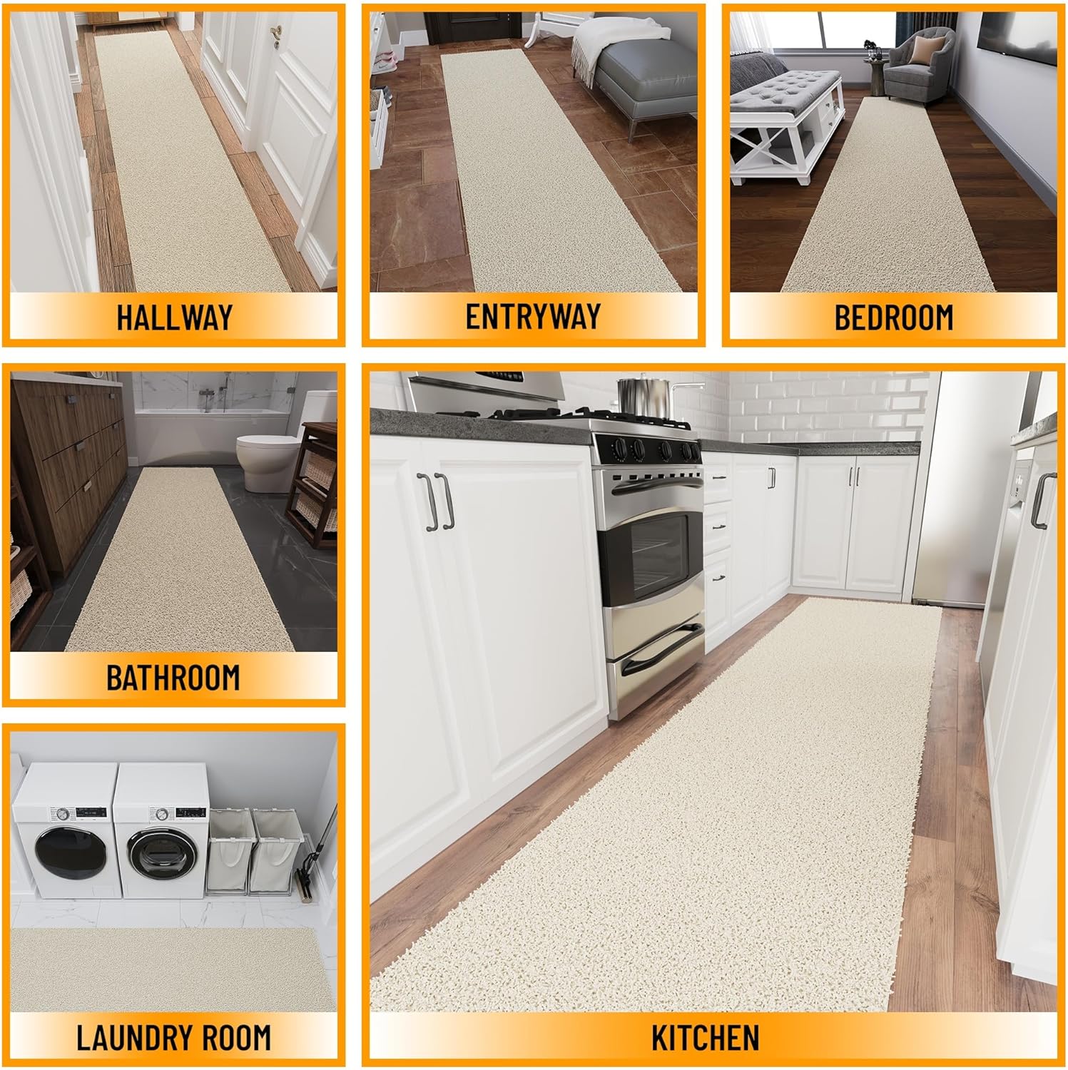 Ottomanson 3' x 20' Shaggy Runner Rug - Plush & Cozy Non-Slip Carpet for Bedroom, Living Room, Bathroom & Entryway - Durable & High-Traffic Friendly for Hallways & Dorms, Cream