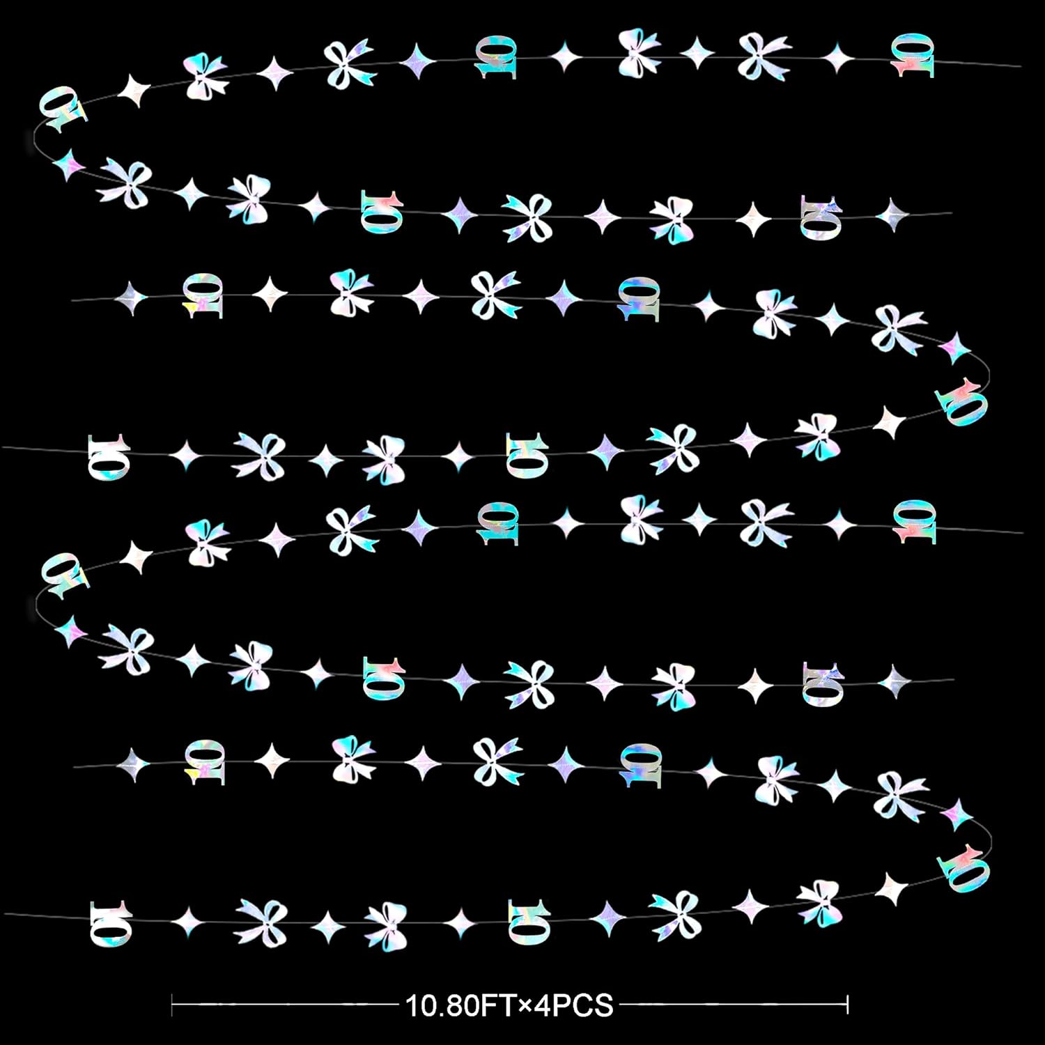 - ๐ Package includes - 4 strings of 10.8 feet/3.3 meters iridescent number 10 and conquette bow with sparkling twinkle star and circle dots garlands , totally is 43.2 feet/13.2 meters