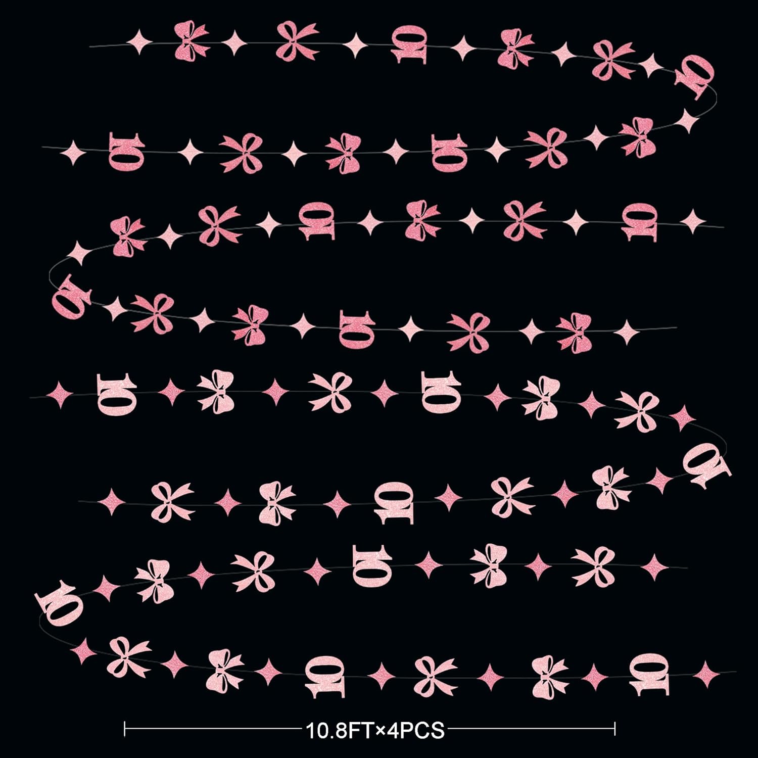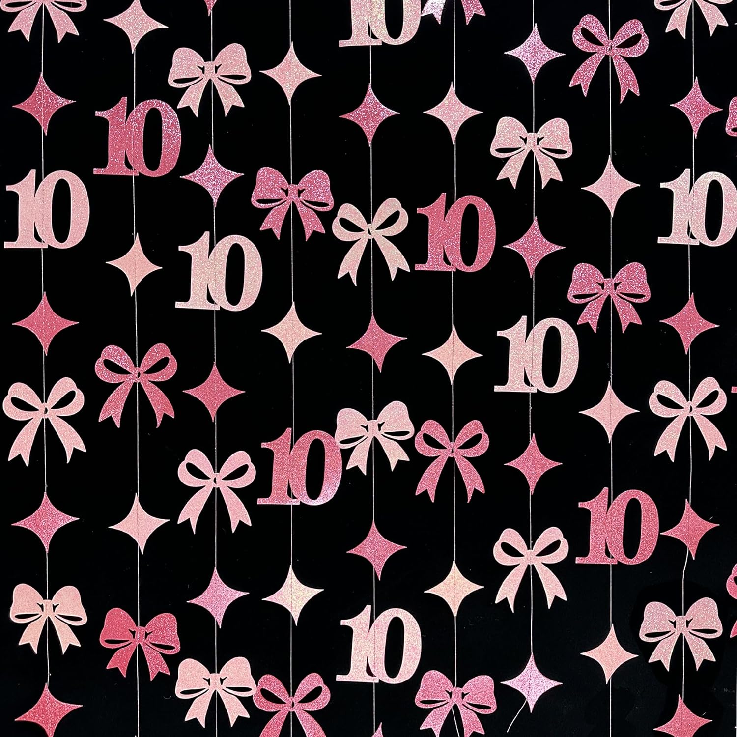 - ๐ Package includes - 4 strings of 10.8 feet/3.3 meters glitter pink and light pink number 10 and conquette bow with sparkling twinkle star and circle dots garlands , totally is 43.2 feet/13.2 meters