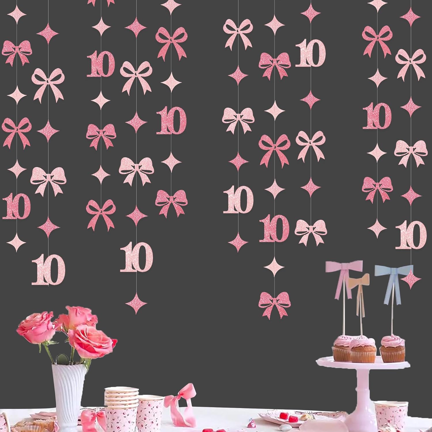 - ๐ Adorable 10th bow birthday party dรฉcor- our pink bow 10th birthday decorations garland kit is perfct for girls 10th birthday party, double digits party, awesome since 2015 party, cheers to 10 years party,10th anniversary, out single digits i'm 10 party, ten birthday decorations, 10th birthday decorations for boys/girls, wedding, bridal shower, birthday, Christmas, barbecue, home, engagement, christenings, fetes, etc