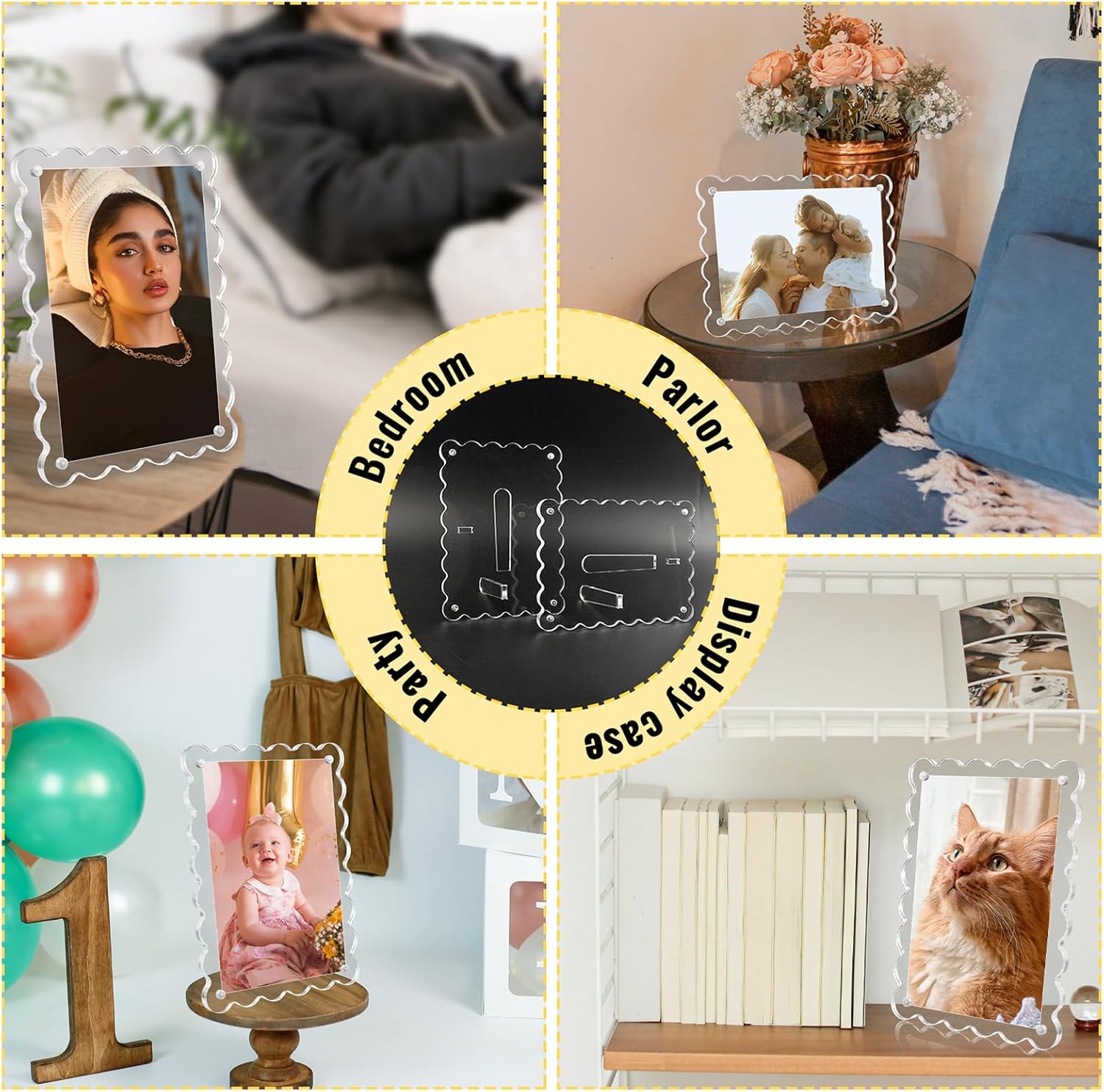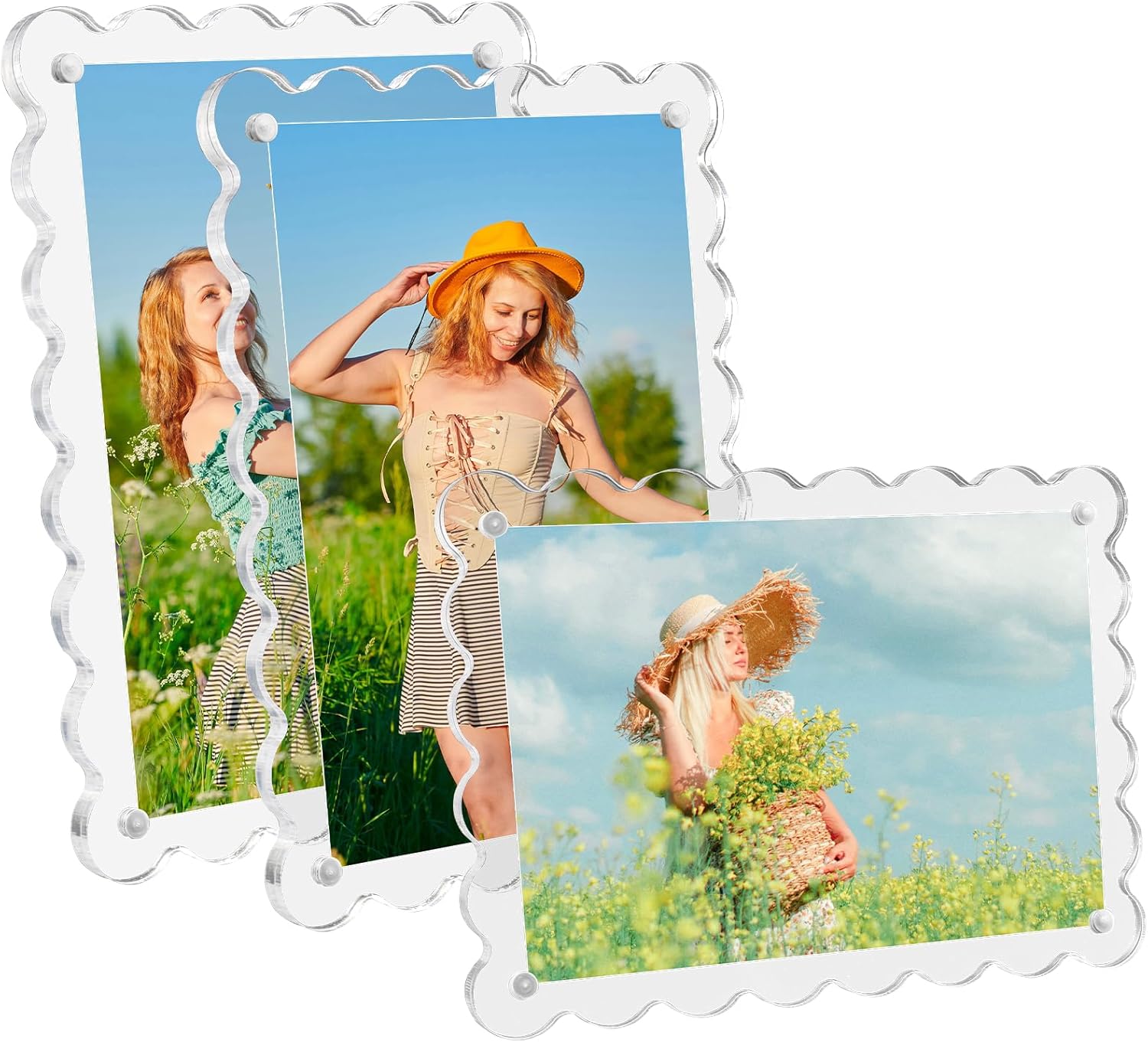 - Special Appearance: The front and back scalloped acrylic photo frame panels are combined by strong magnetic magnets, which is both beautiful and very convenient to change photos