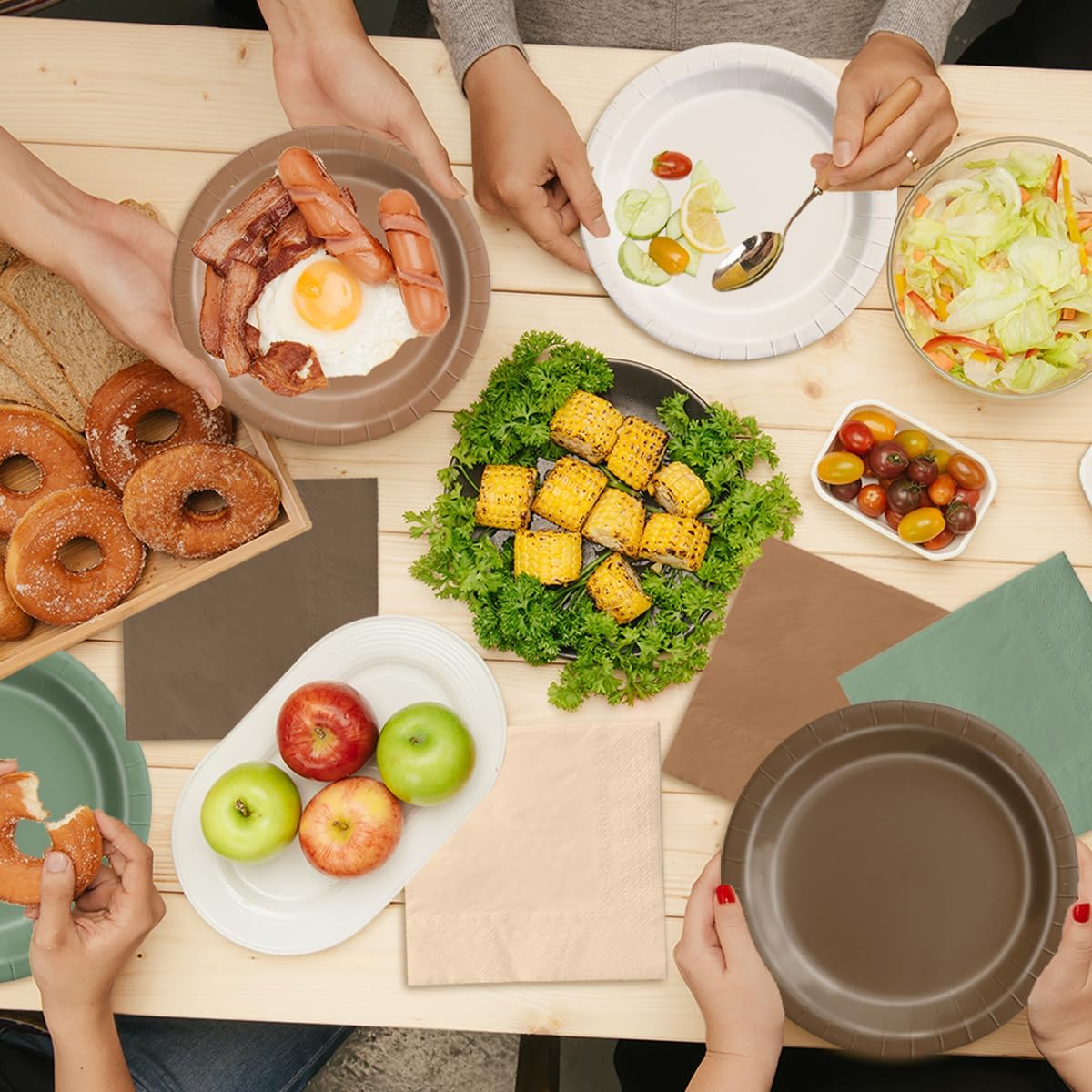 CMUSKO Woodland Baby Shower Decorations - 150pcs Brown Sage Green Forest Animal Theme Plates & Napkins Kit Serves 50- Safari Party Supplies for Birthday, Baby Shower Neutral