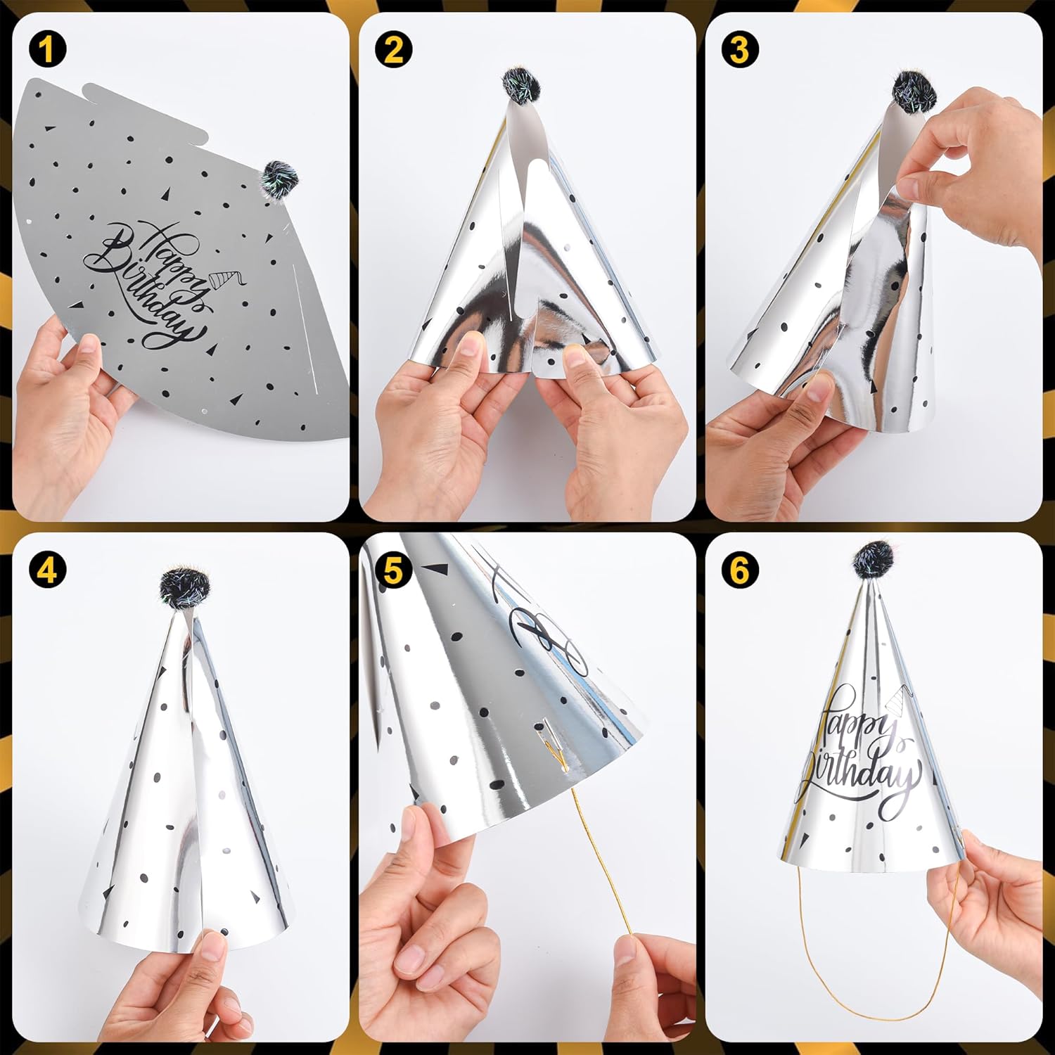 36 Pcs Black Golden Birthday Party Hats Set Includes 6 Party Cone Hats 6 Birthday Headband 12 Paper Glasses 12 Noise Makers Party Favors for Baby Shower Photo Booth Props