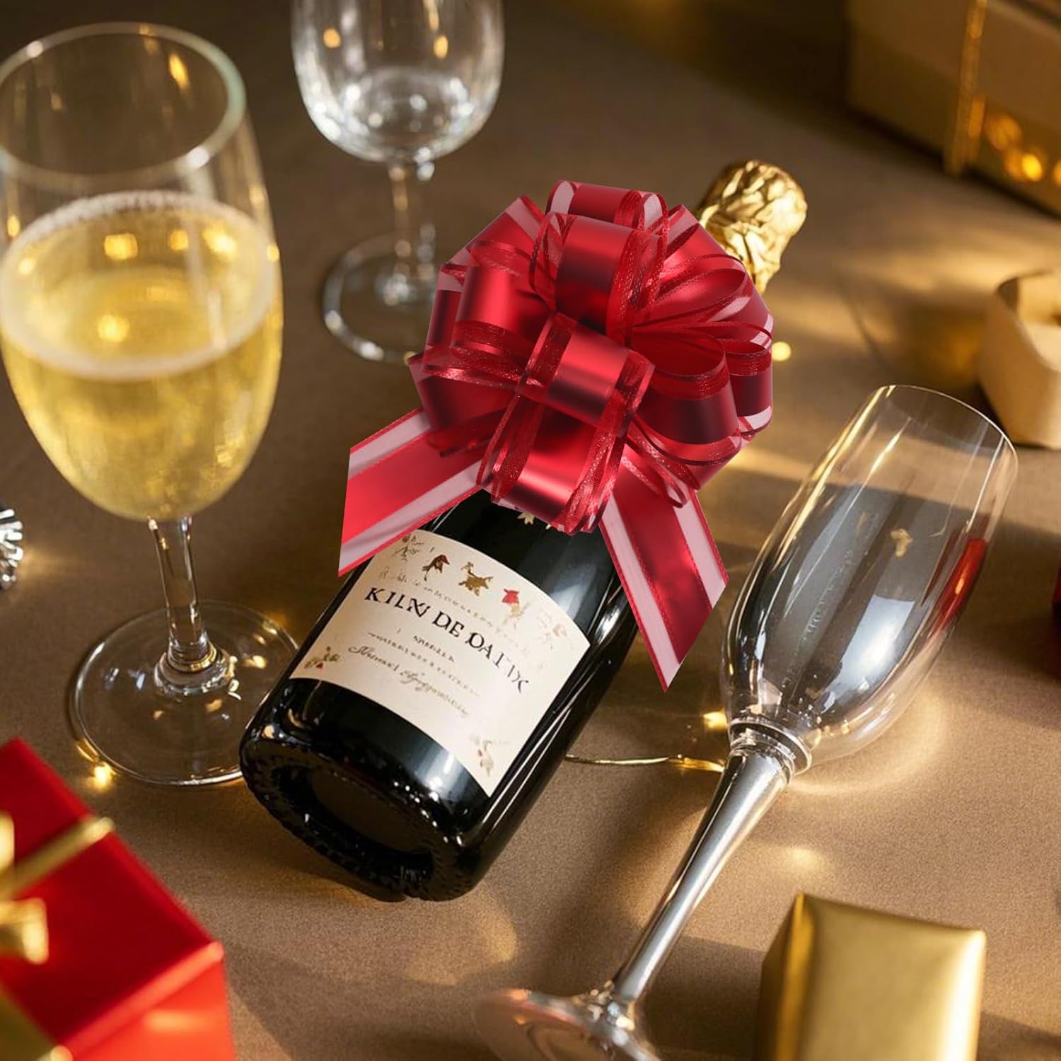 12 PCS 6 Inch Organza Red Pull Bows - Perfect for Gift Wrapping, Wedding Decor, Car Bows, Birthday Parties, Christmas and Valentine's Day