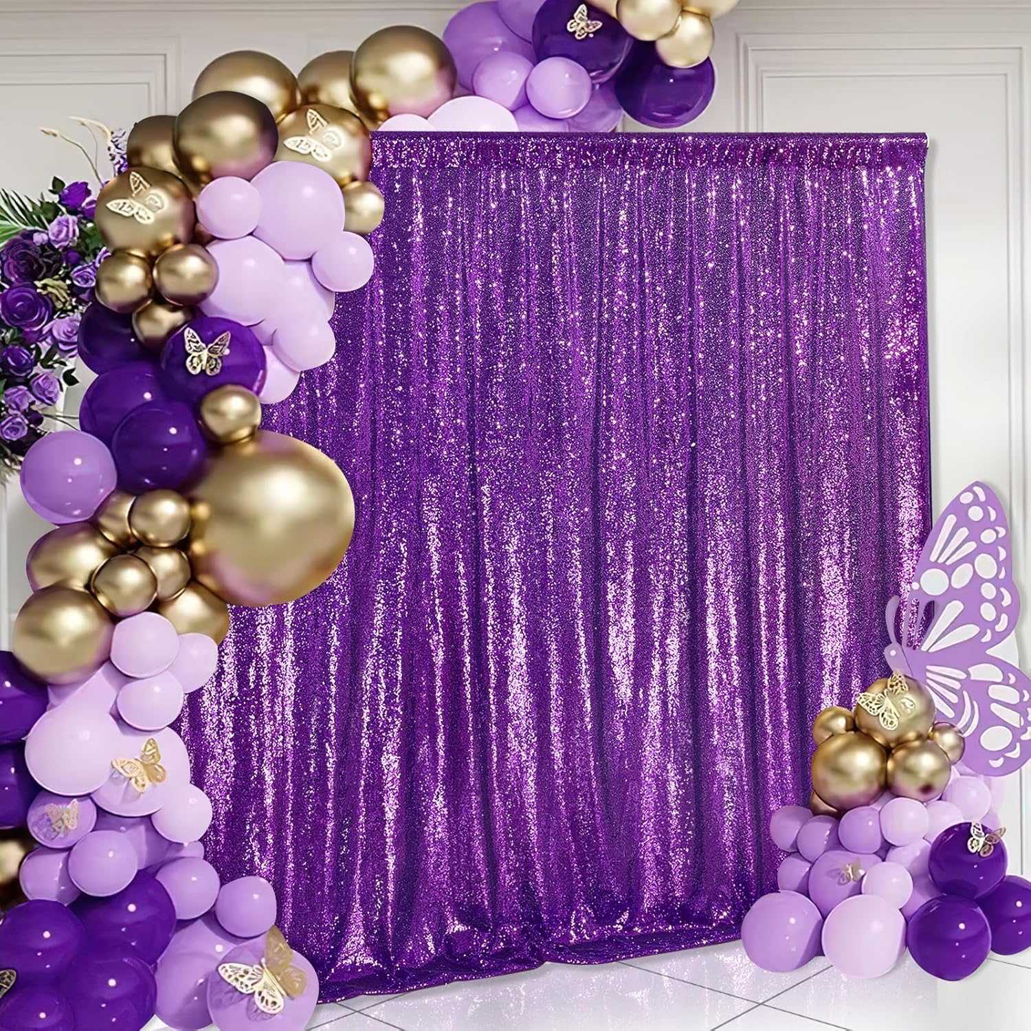 - 【Premium Sequin Material】: This is a sequins are not easy to drop Purple sequin backdrop. The Purple sequin backdrop curtain is made of 3MM round high density sequins material with mesh fabric backing. It looks shiny and durable , making the backdrop looks more sparkle and gorgeous .