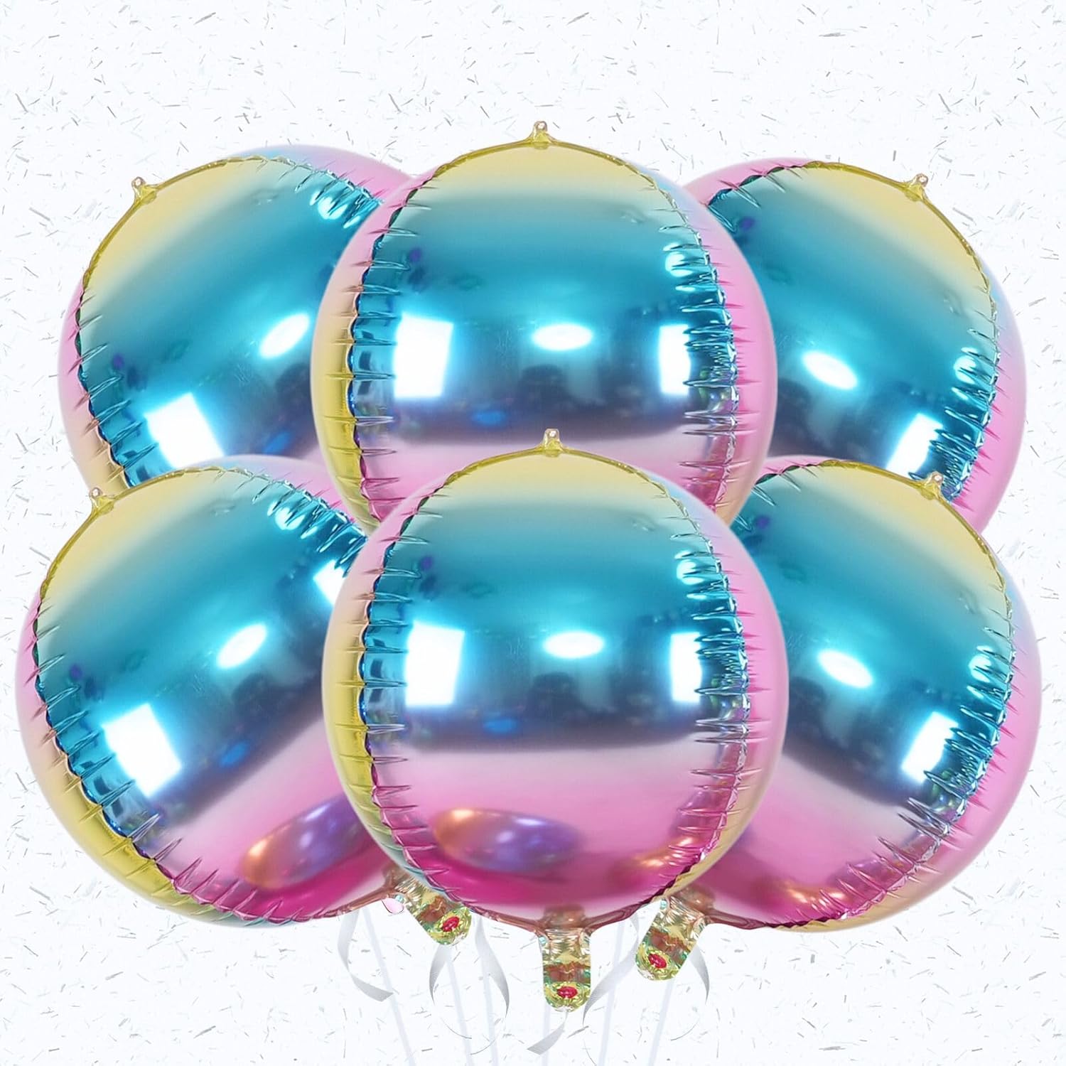 6Pcs Gradient Rainbow Round Foil Balloons,Giant 4D Round Ball Balloon 22 Inch for Wedding Birthday Engagement Gradient Party