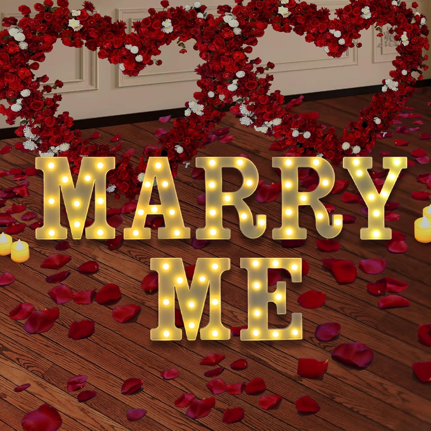 - ★【Light Up Your Love】Light up letter lights are great decorations, perfect for all kinds of scenes and memorable moments. Light up your proposal ceremony by spelling out “MARRY ME” with our letter lights, light up the wonderful moments, warm white light creates a cozy atmosphere and makes your love shine more!