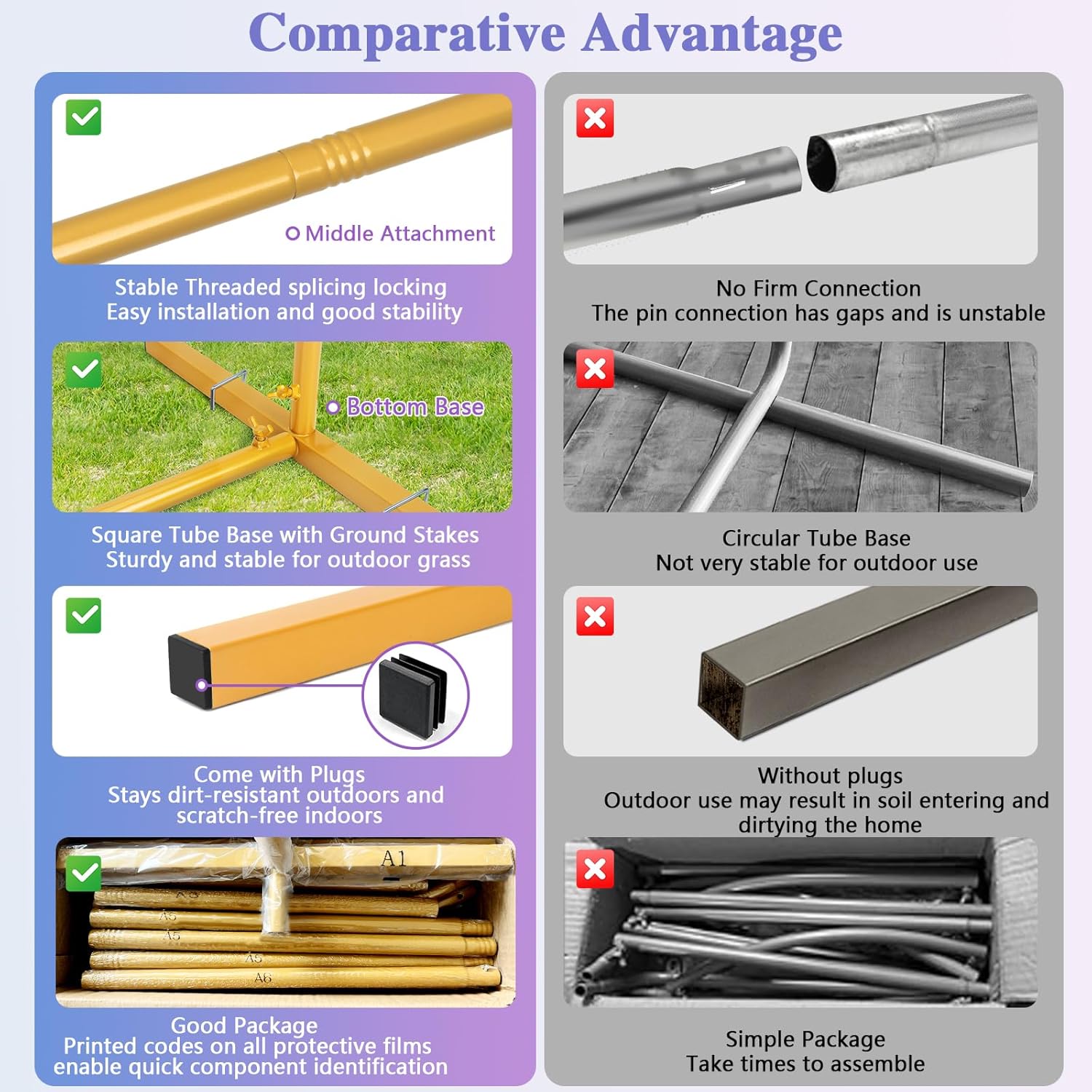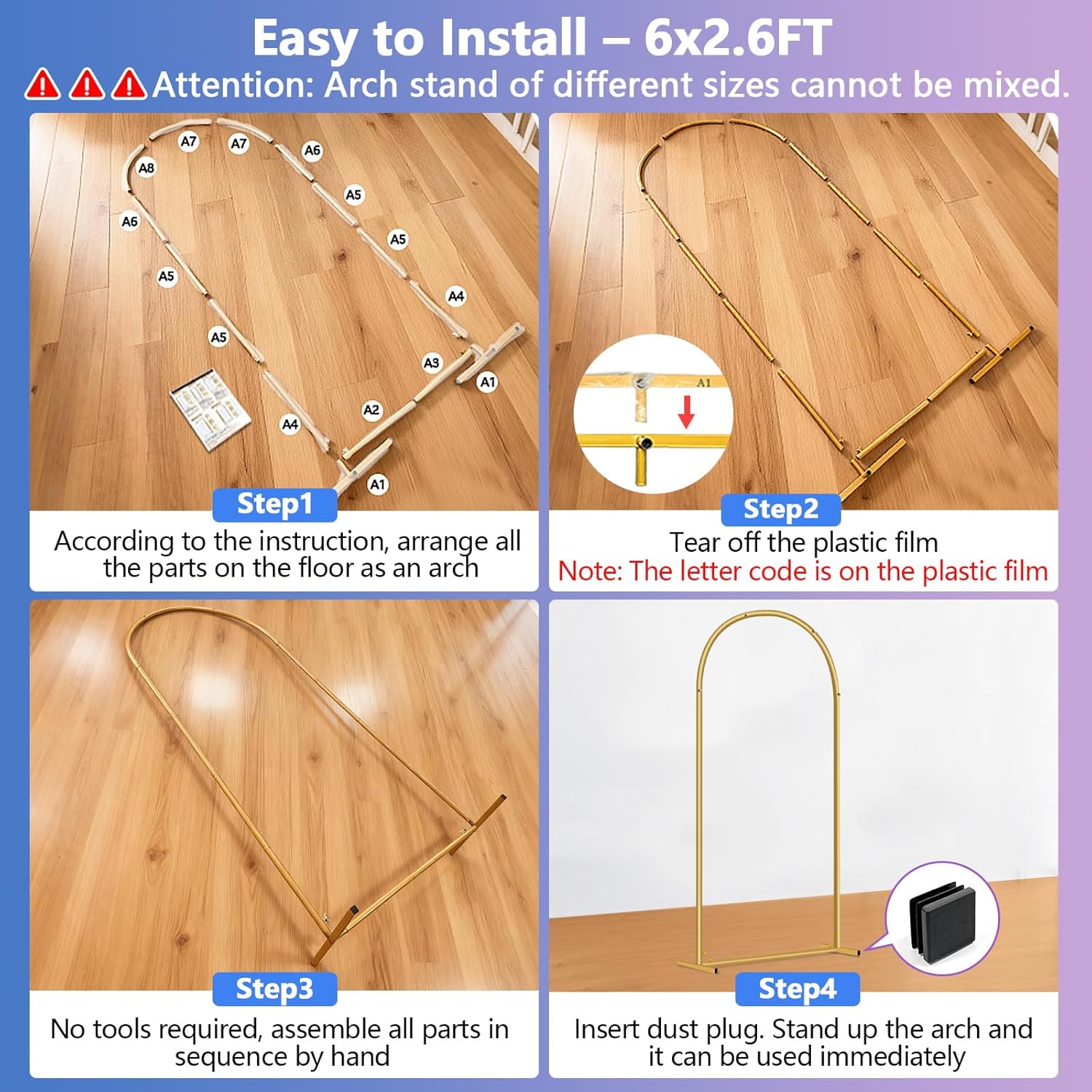 - Complete Ready to Use Kit: Includes all parts of arch stand set (size 6 ft/ 5 ft/ 4 ft), heavy-duty ground stakes (secures outdoor setups on grass or uneven terrain), 4 plastic dust-proof caps (blocks dirt/debris from tube ends), and an illustrated manual