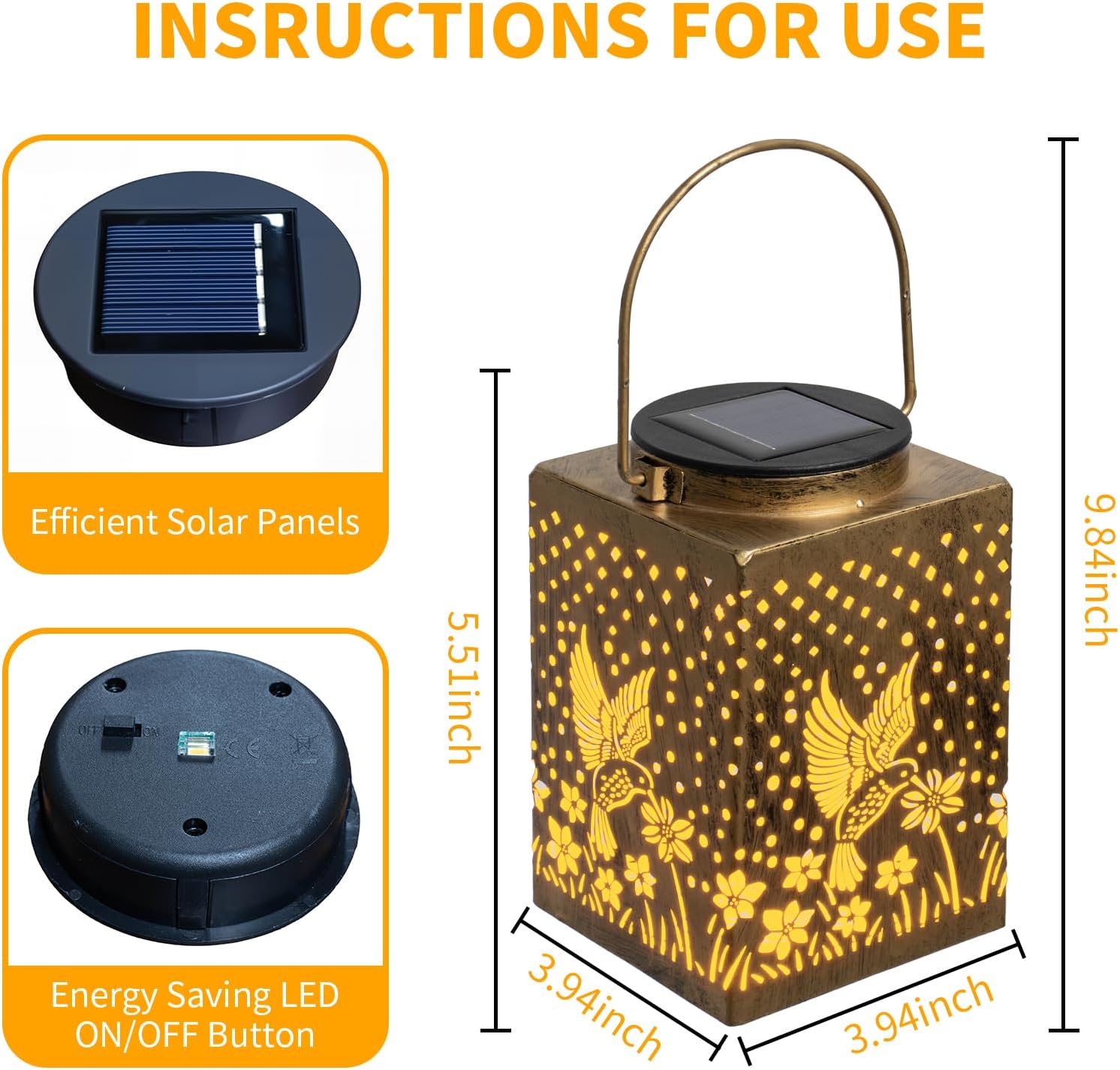 - Retro Solar Lanterns Outdoor Waterproof - Solidly built metal construction solar lantern with IP65 waterproof and be able to withstand outdoors year round, hold up all kinds of weather including rain and snow. There is a hole in the bottom of the lantern so it can be affixed to a table or bench with a screw. The outdoor lantern is solar, rechargeable, energy saving and environmental friendly.