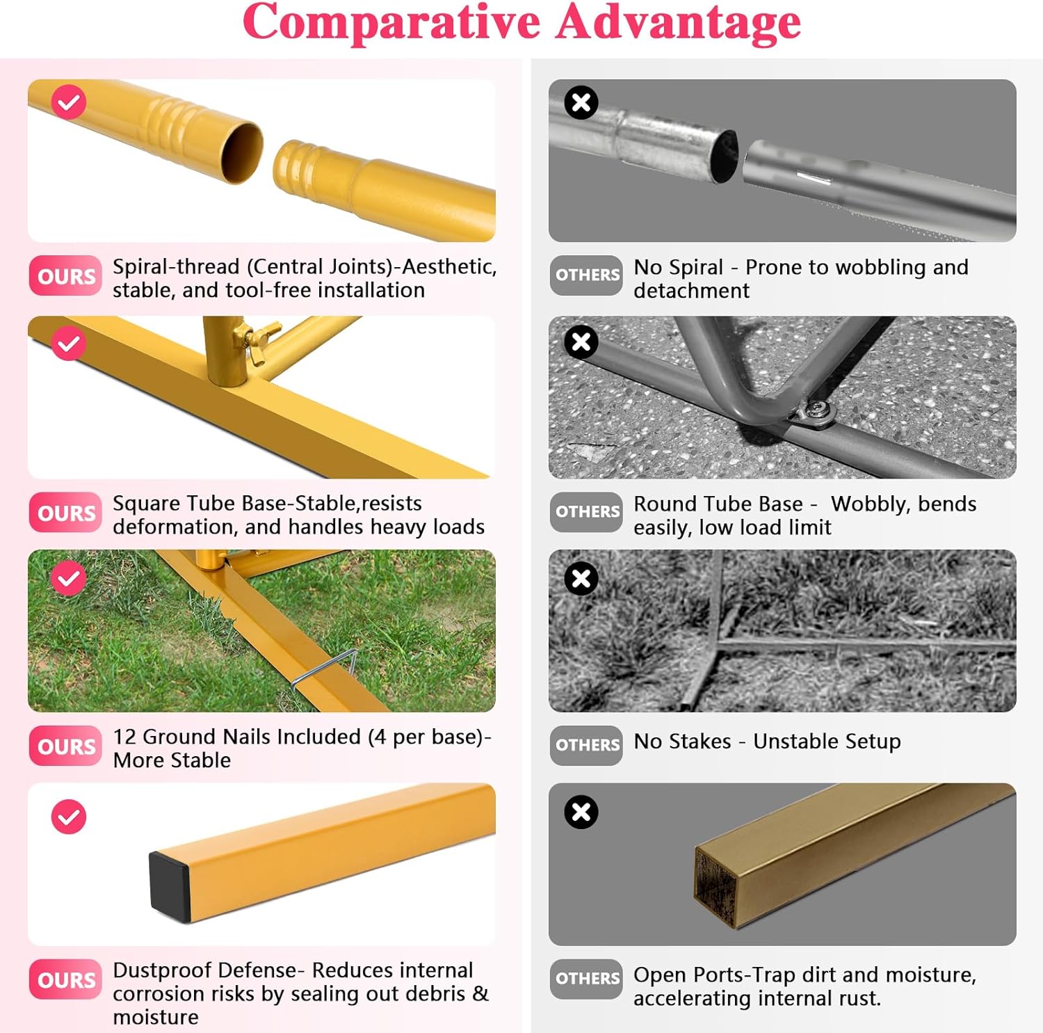 - Sturdy & Aesthetic Connections:YAYOYA wedding arch stand features spiral-threaded joints instead of traditional screws at central structural connection points. It not only creates an aesthetic but also ensures rock-solid stability