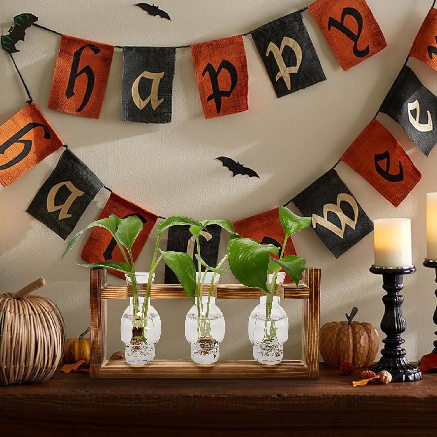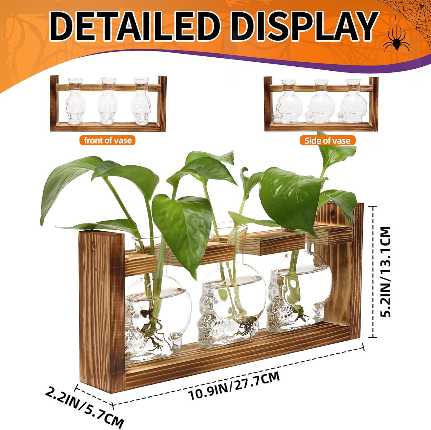 Plant Terrarium Propagation Stations Hydroponics Halloween Skull Planter Vase Skulls Decor with Wooden Stand Gife for Father